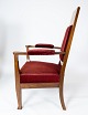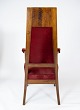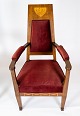 Set of two armchairs of walnut with inlaid wood and upholstered with red velvet from around 1910.