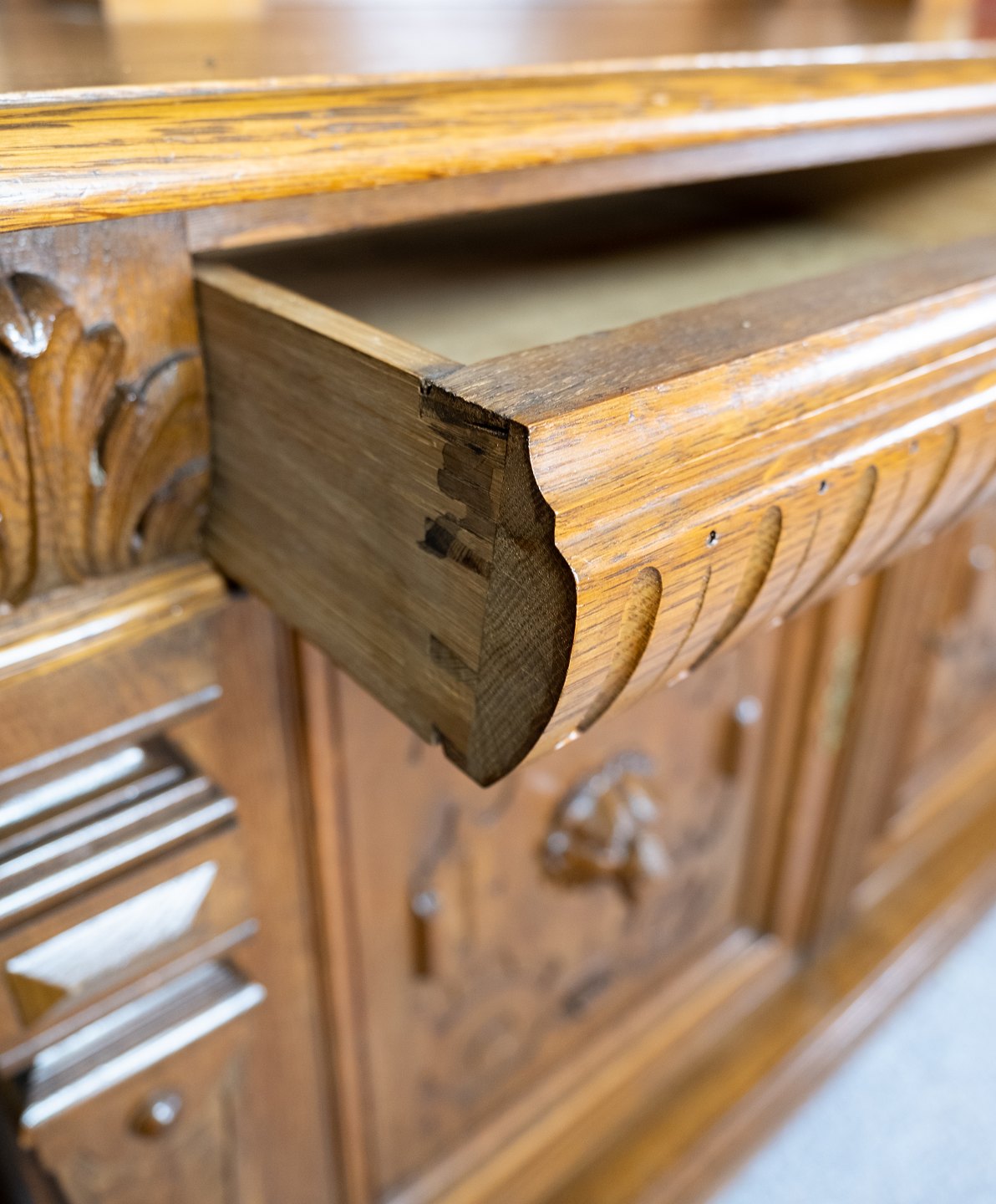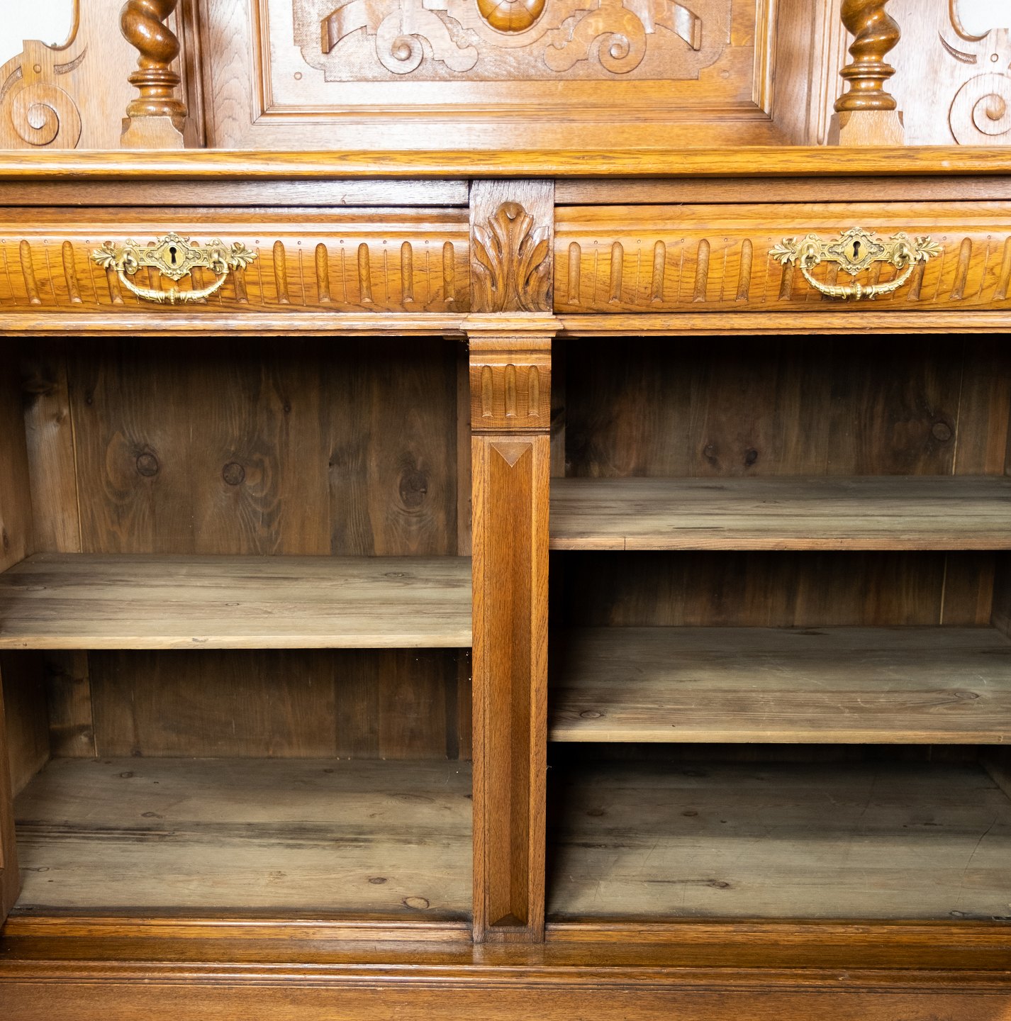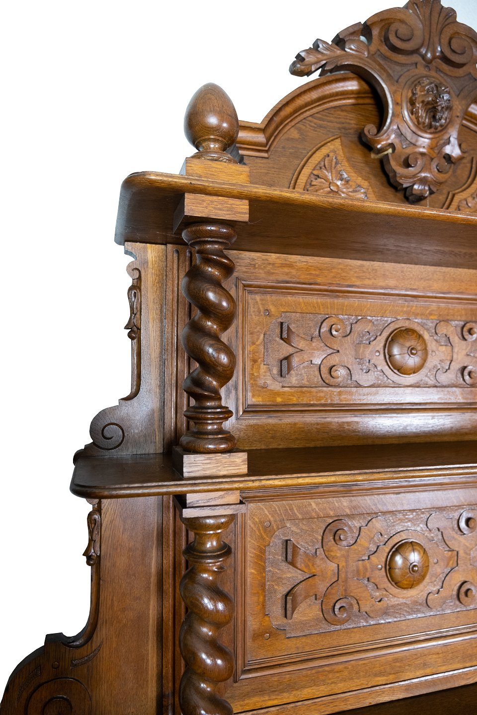 Large cabinet of oak with carvings, in great antique condition from the 1920s.