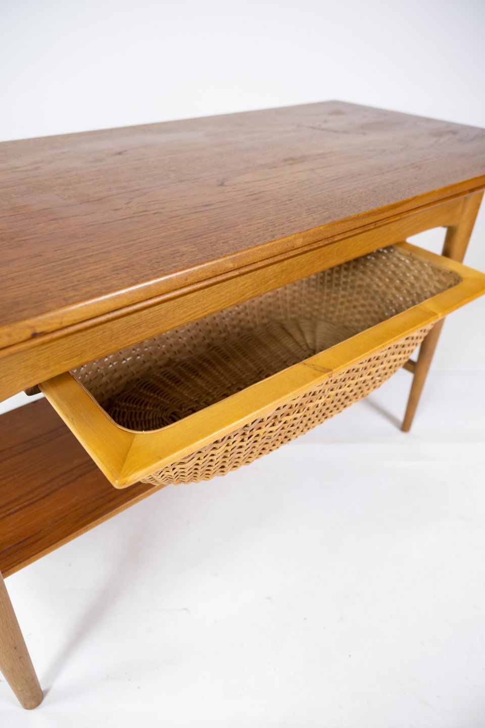 SoldCoffee- and Sewing table in oak and teak of danish design from the 1960s. The table is in great vintage condition.
