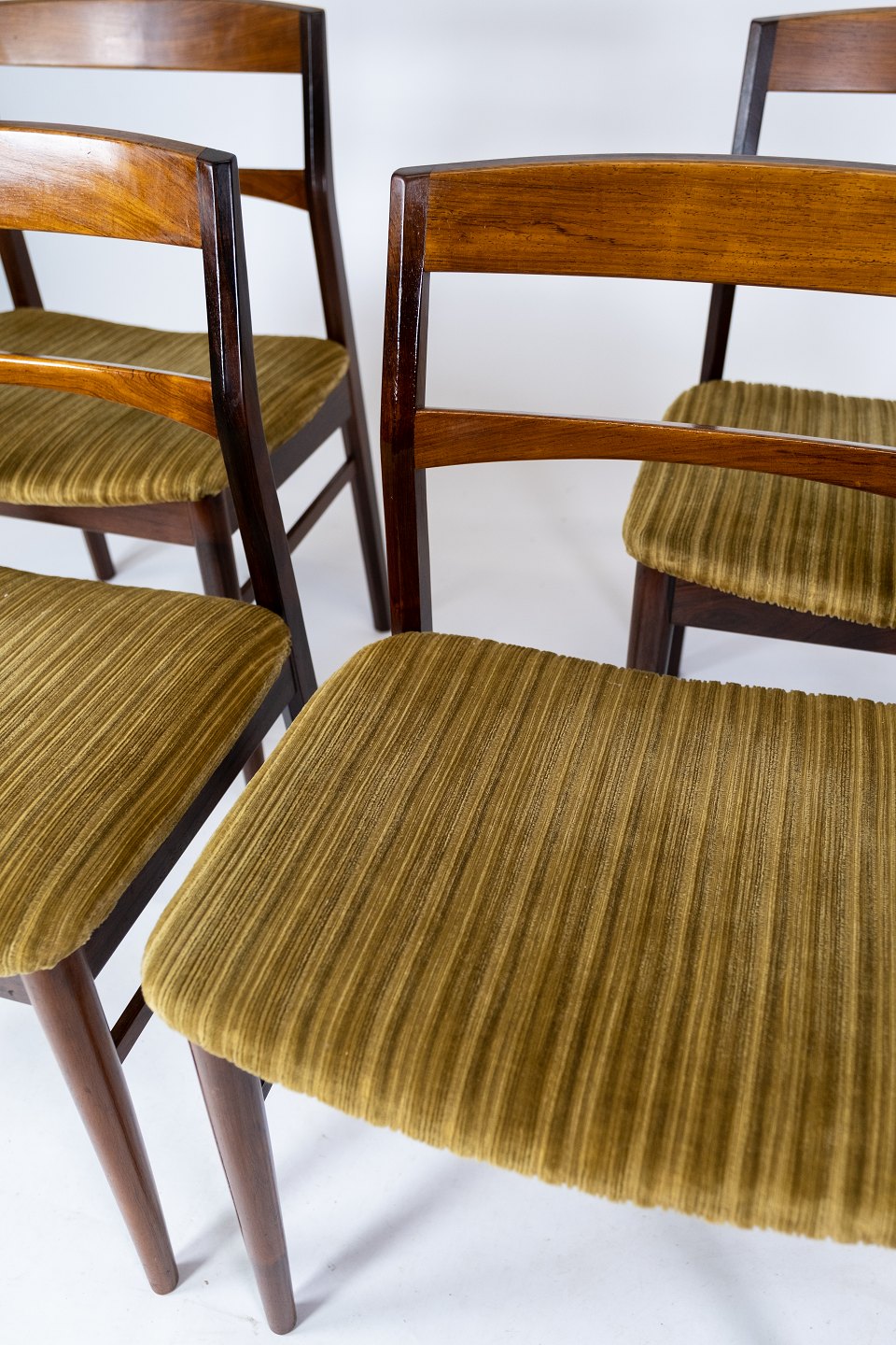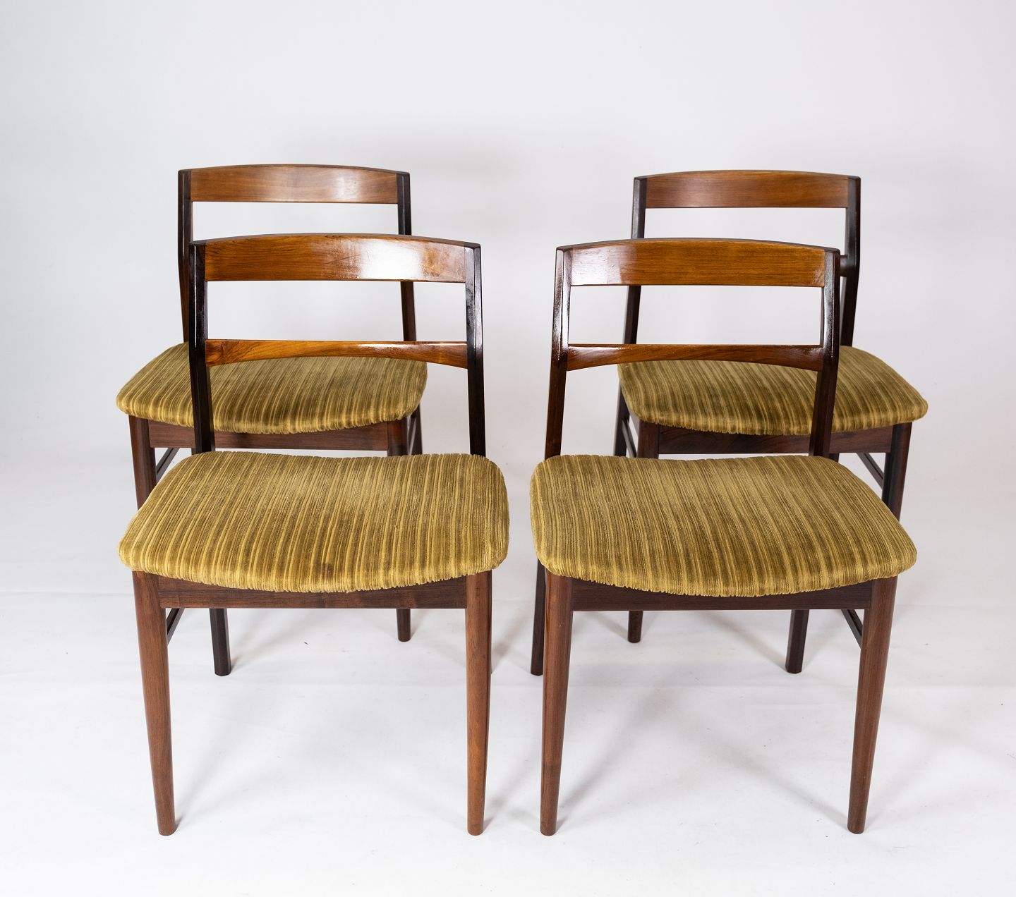 Et Sæt 4 Spisestuestole - Palisander - Grønt Stof - Dansk Design - 1960