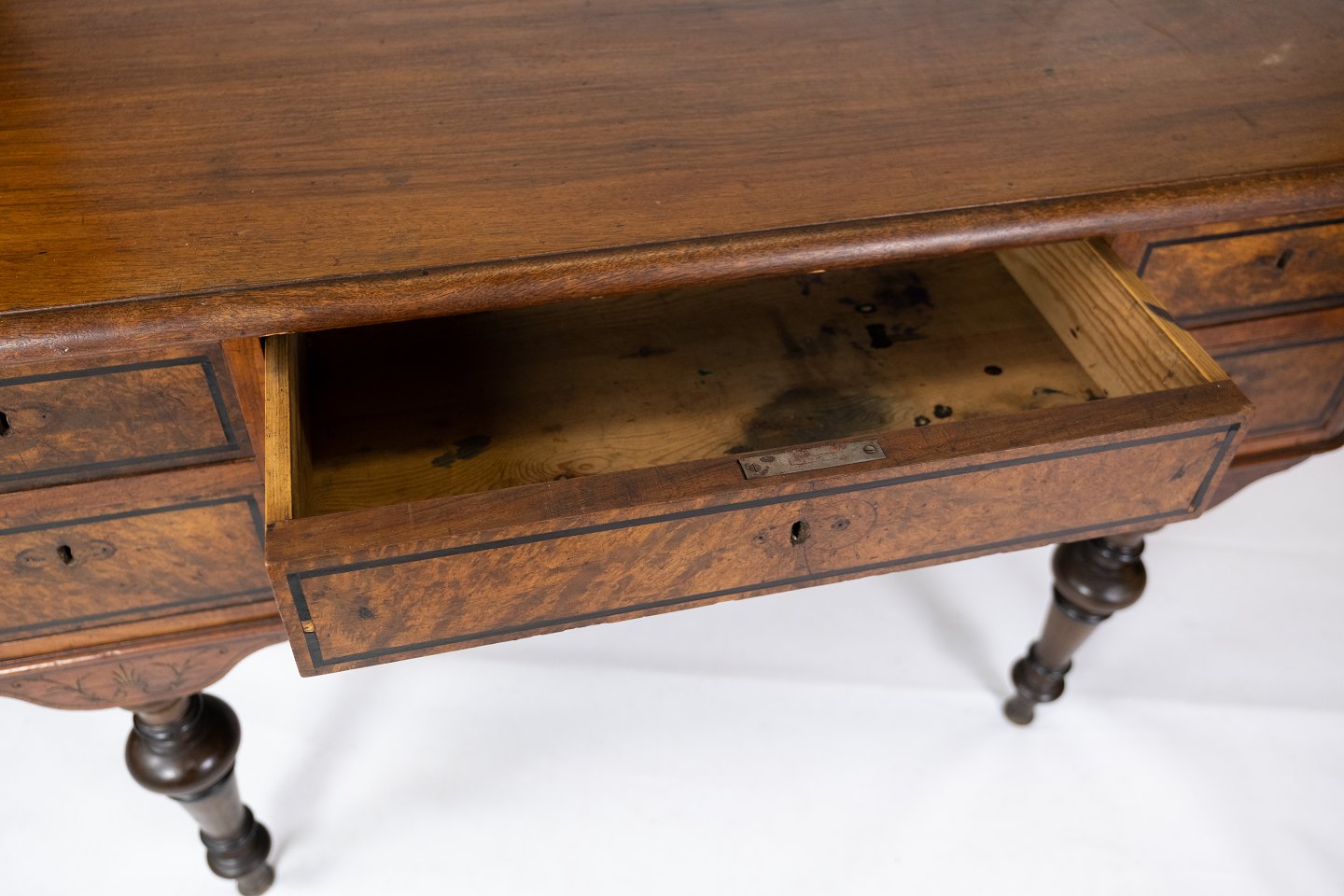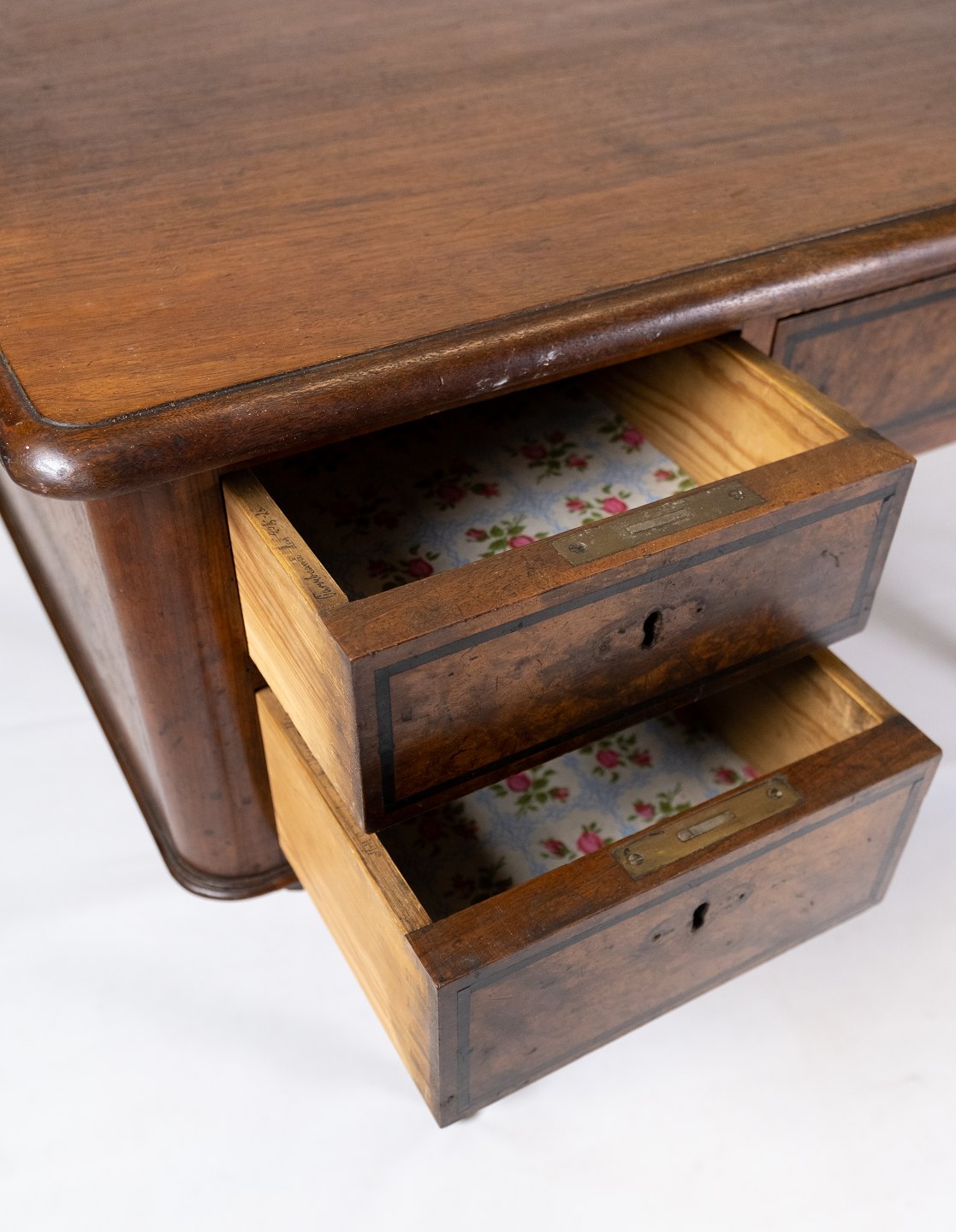 Skrivebord af nøddetræ, i flot antik stand fra 1860erne.
