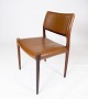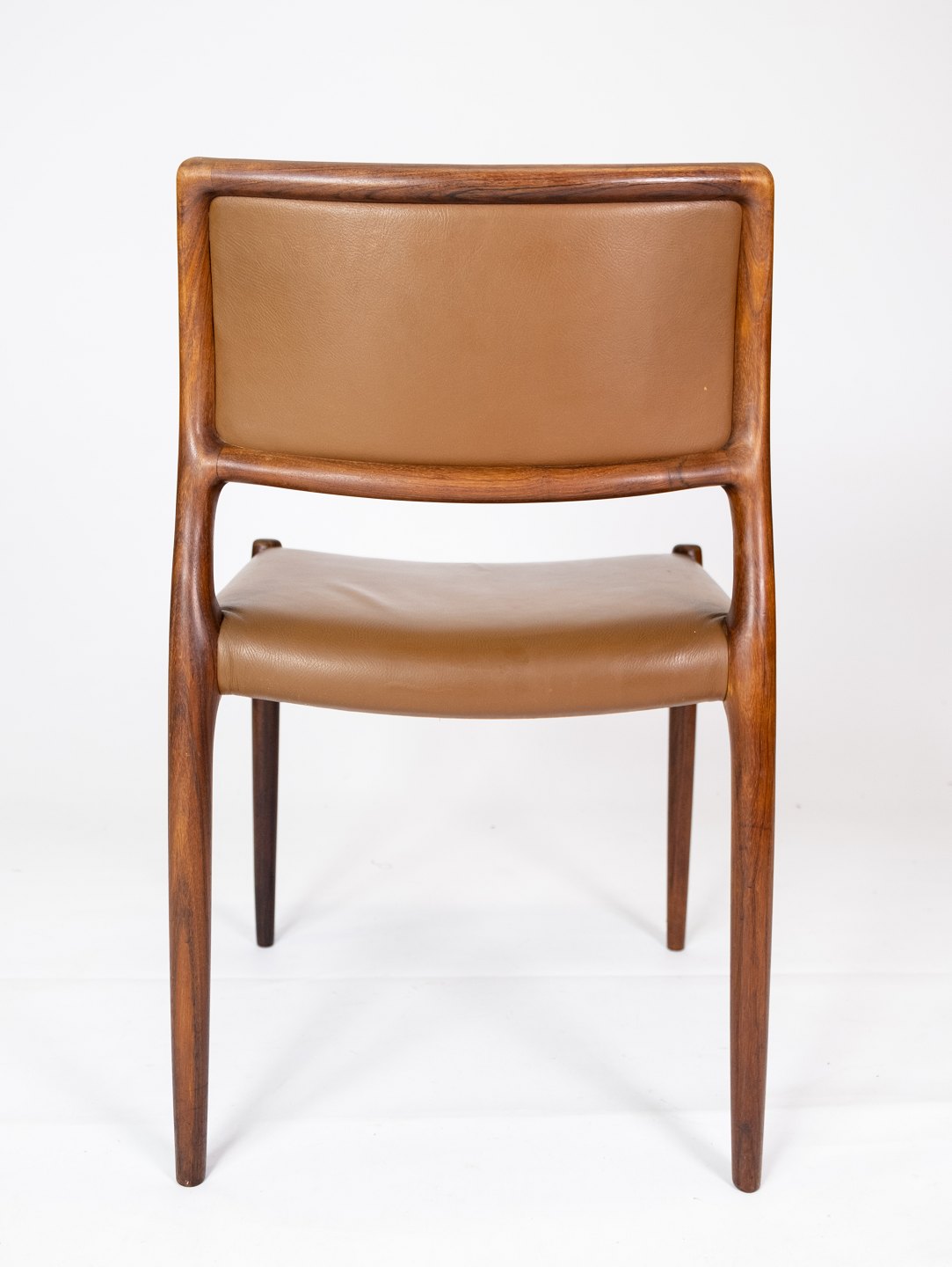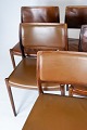 Sæt af 6 spisestuestole, model 80, i palisander og cognac farvet patineret læder designet af N.O. Møller.