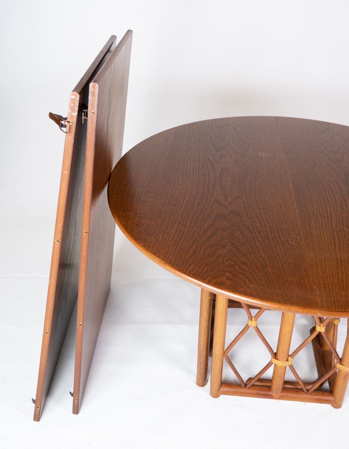 Spisebord i eg med to udtræksplader af dansk design fra 1960erne. Bordet er i flot brugt stand.