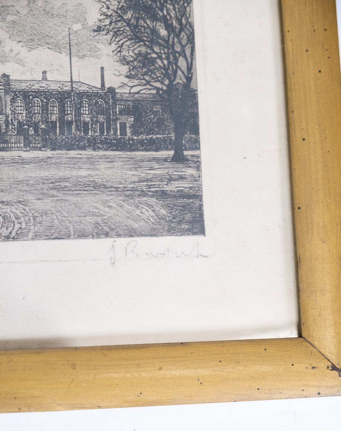 Sort hvid tegning med forgyldt ramme.