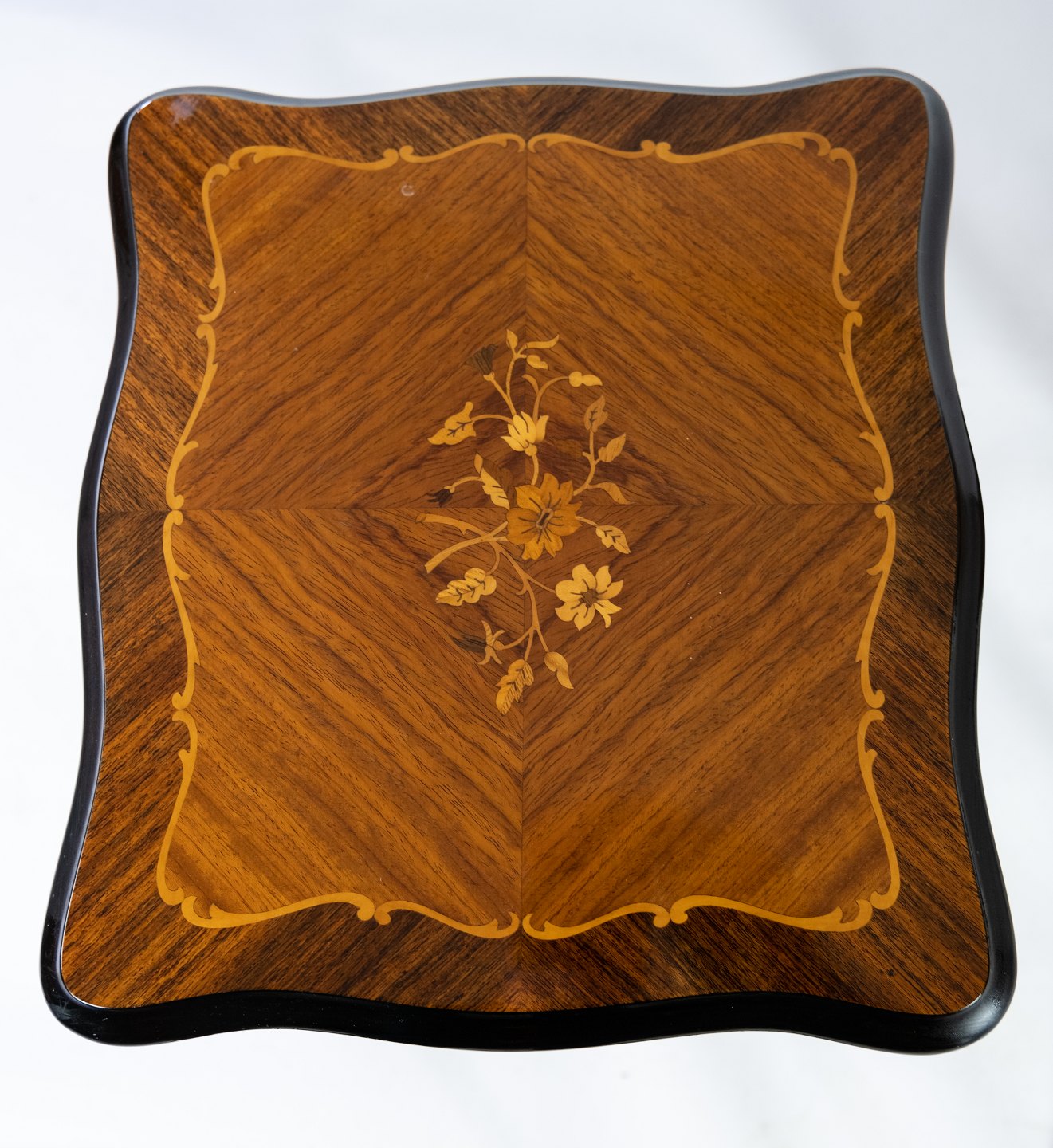 SolgtIndskudsbord af rosen træ med intarsia, i flot brugt stand fra 1960erne.