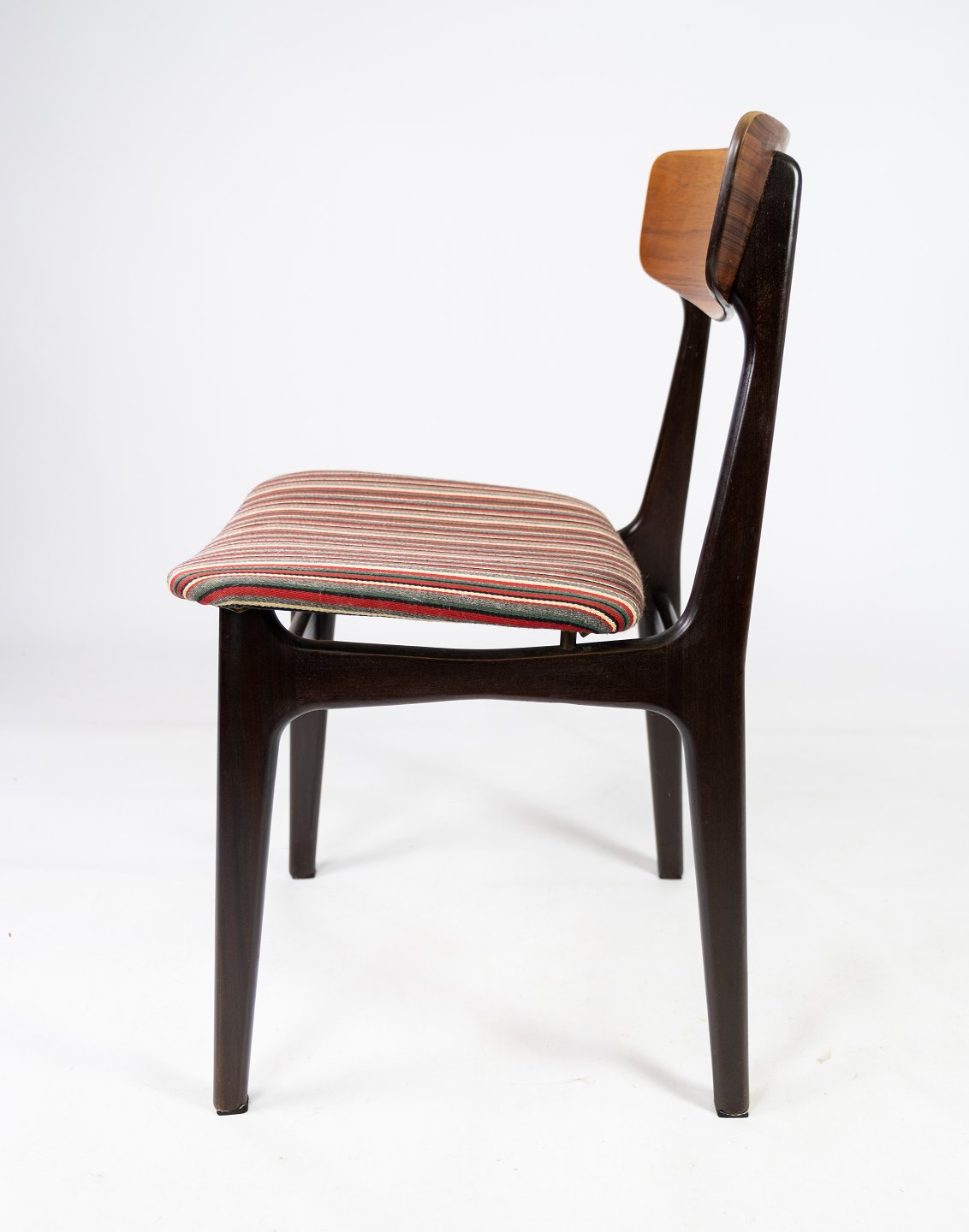 Set Of 2 Dining Chairs - Rosewood - Striped Fabric - Schønning & Elgaard - 1960s