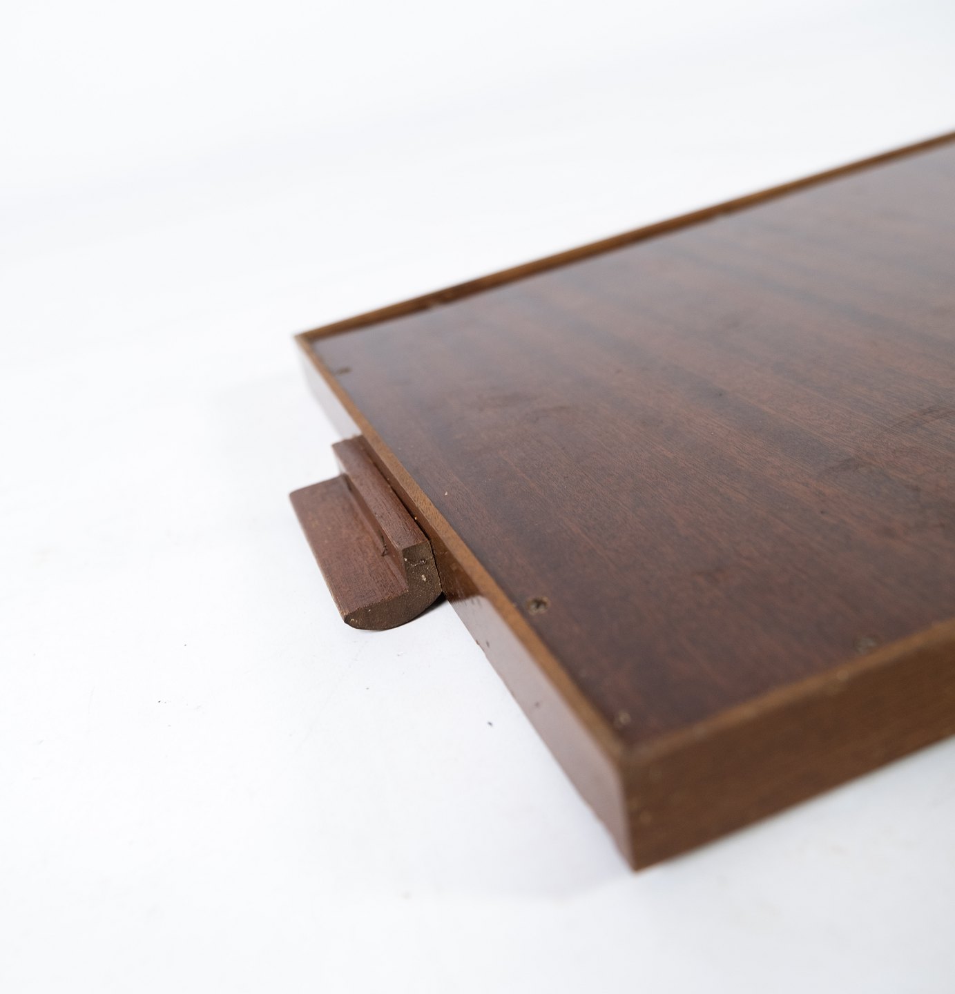 Serveringsfad af mørkt træ med intarsia fra 1940erne.