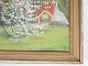 SoldOil painting with cherry wood motif and gilded frame, painted by Carl Lundblad (1903-1983) from 1957.