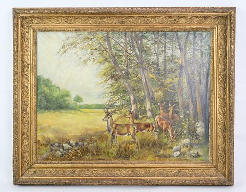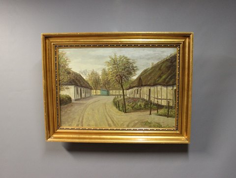 Oliemaleri på træplade med motiv af Hammerhus, Bornholm signeret H. Dahl fra 1930erne.