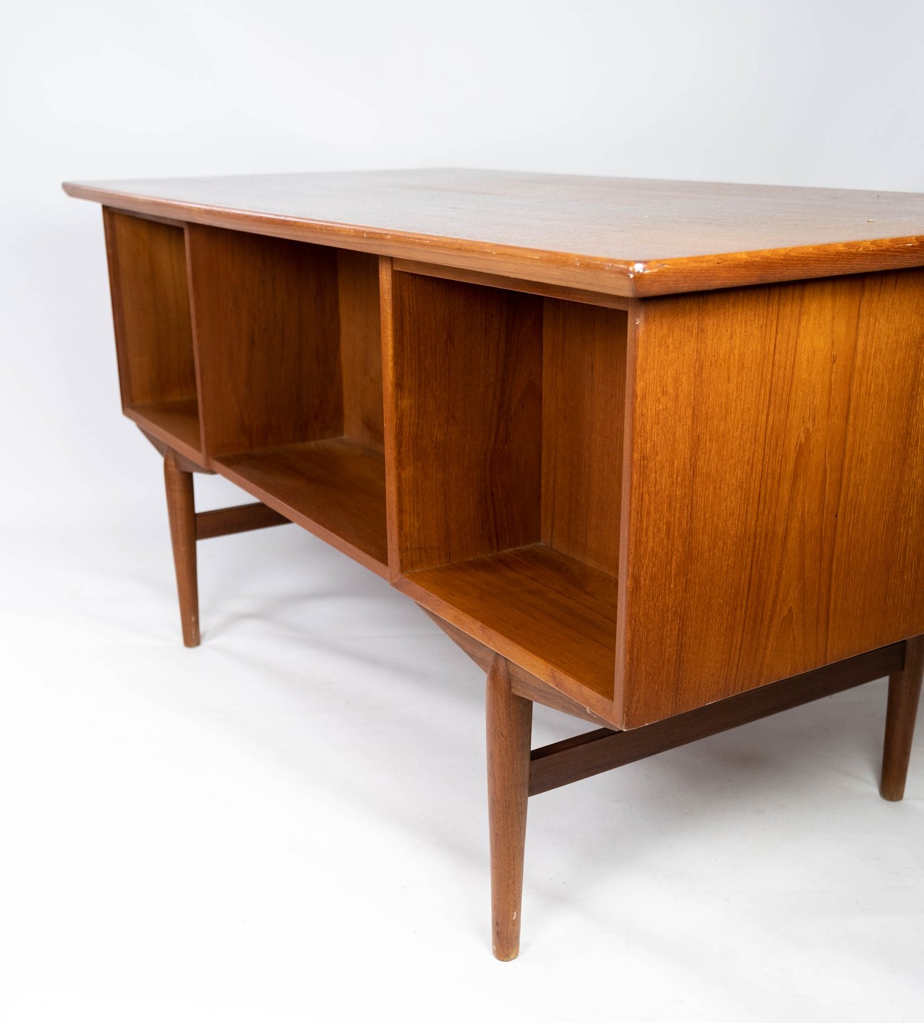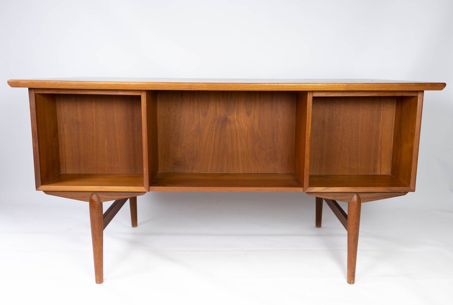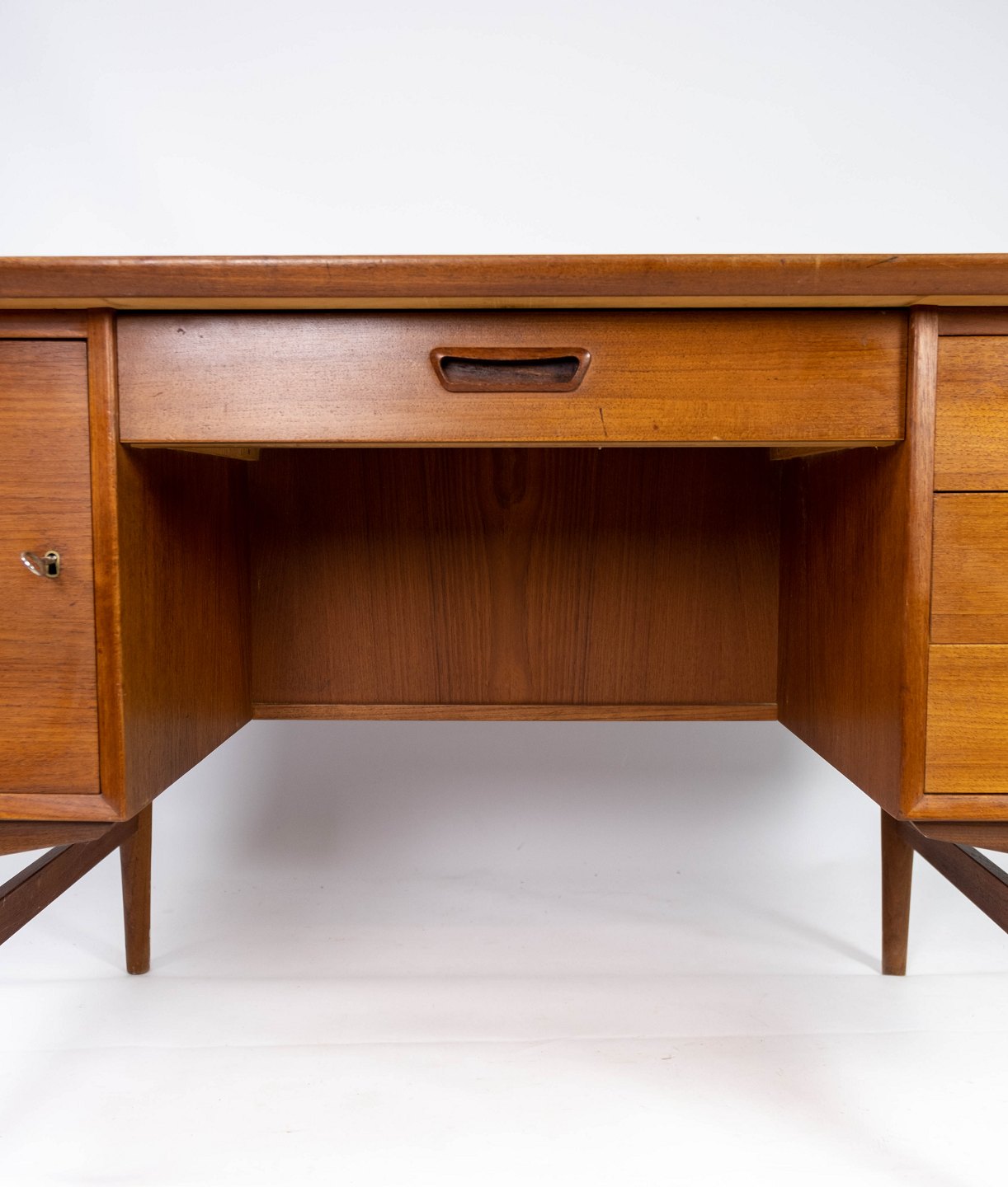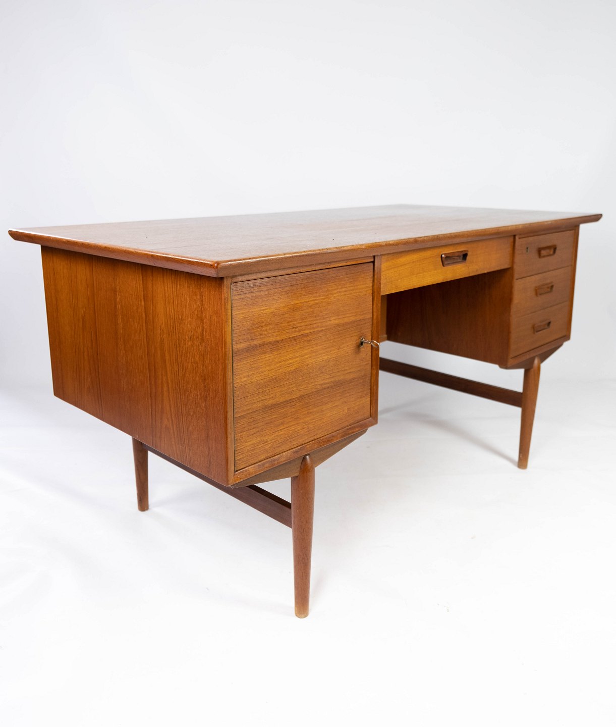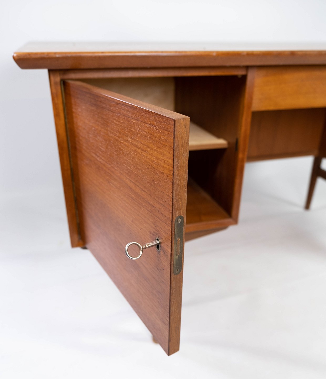 SolgtSkrivebord i teak af dansk design fra 1960erne. Bordet er i flot brugt stand.