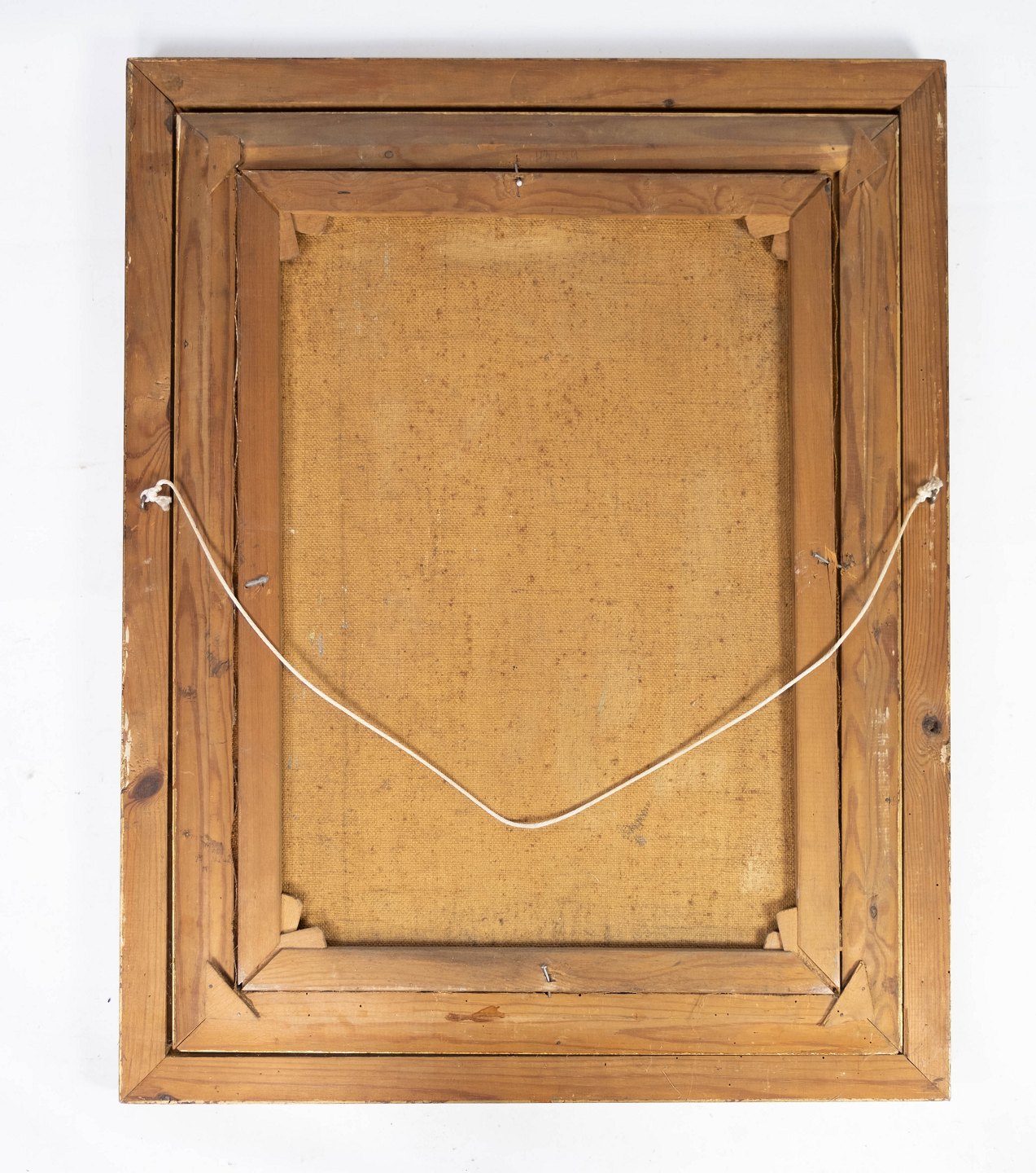 Oliemaleri med motiv af et hjem og med forgyldt ramme, malet af Jens Konghammer (1884-1974) fra 1920erne.