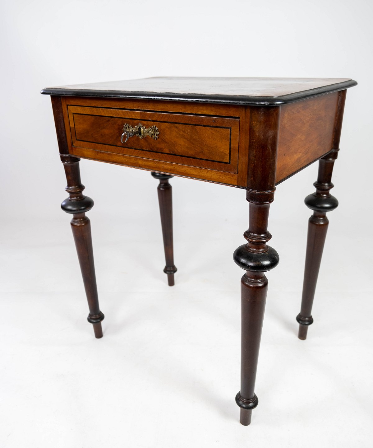 SoldSide table in mahogany with inlaid walnut and ebony, in great vintage condition from 1860.