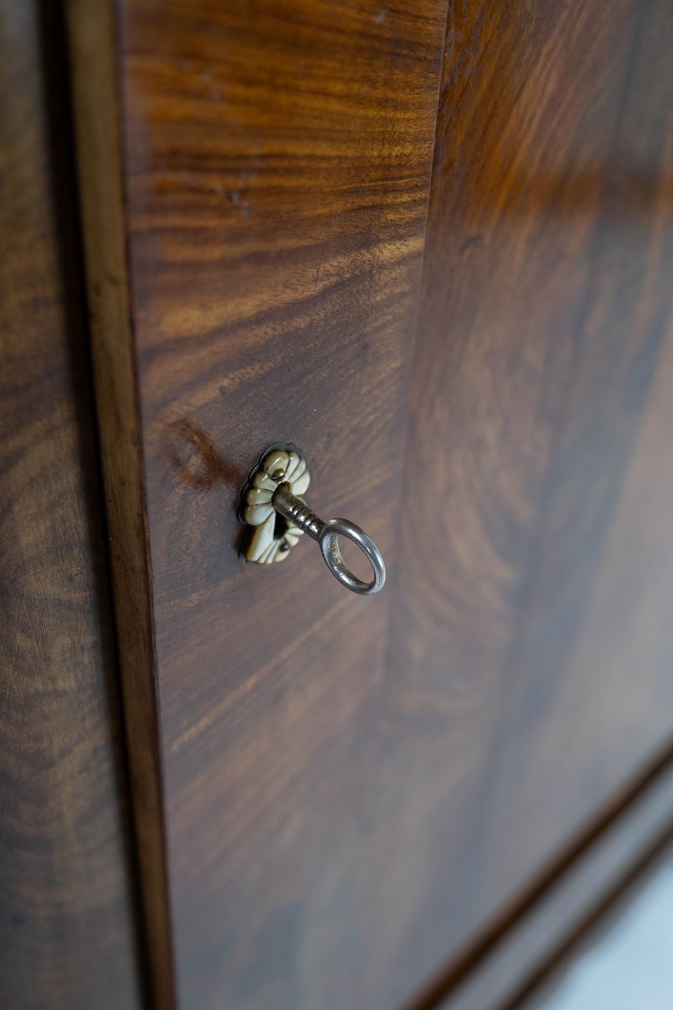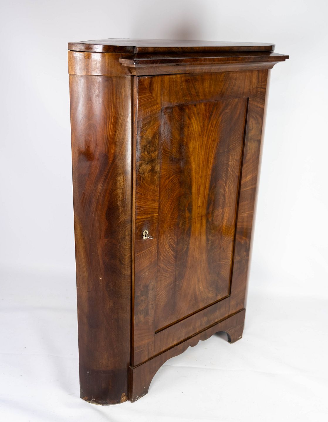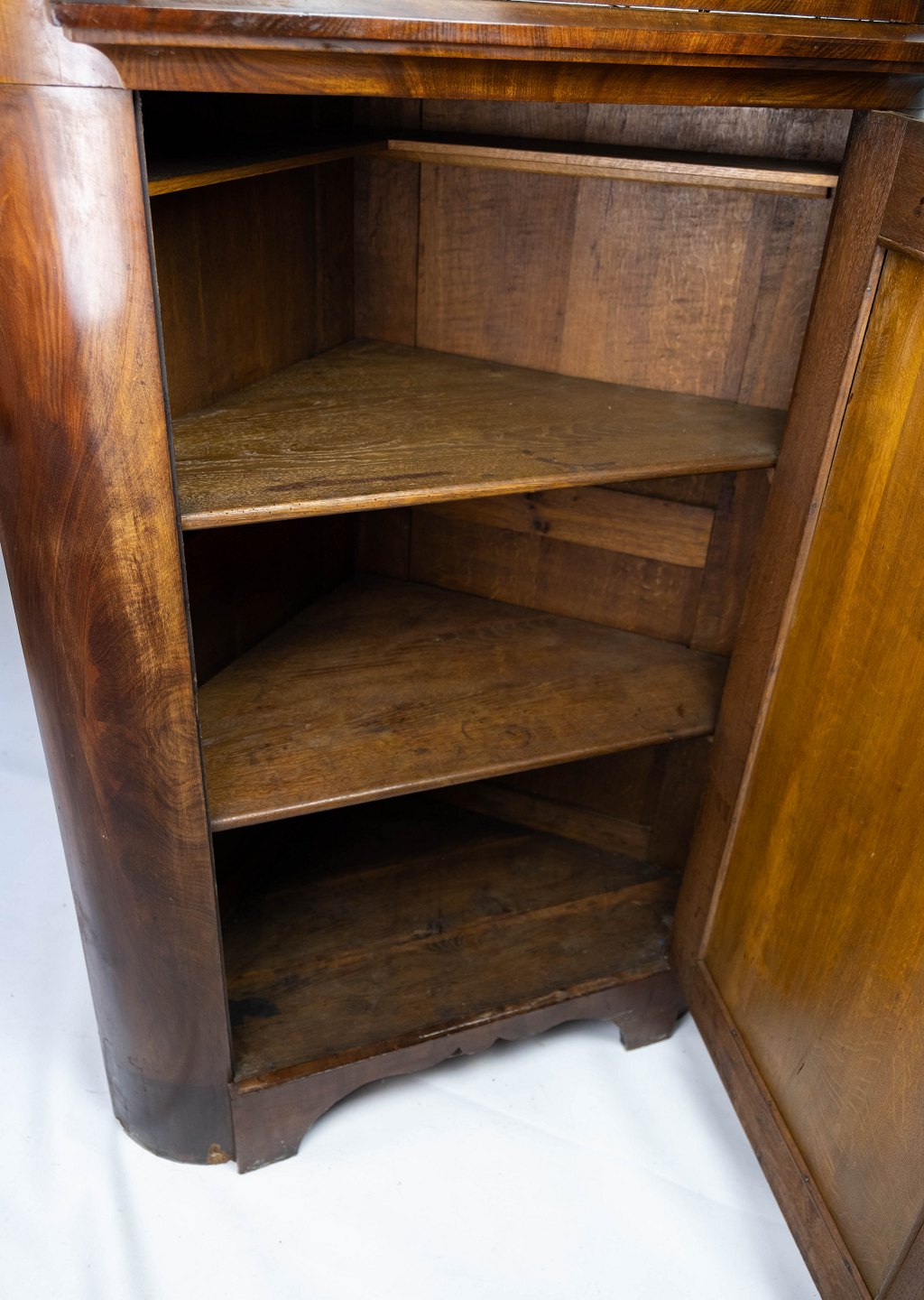 SolgtHjørneskab af mahogni i flot antik stand fra 1860.