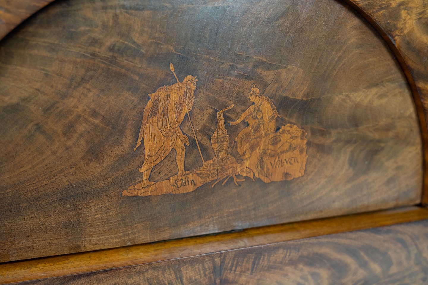 Antique dresser of mahogany with inlaid wood, in great vintage condition from the 1840s.