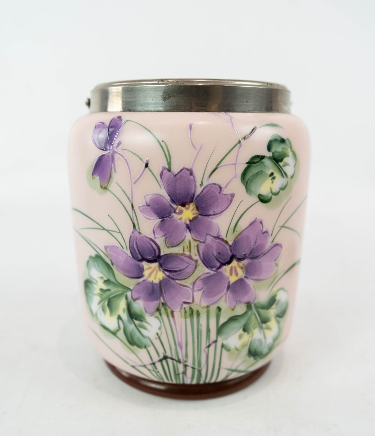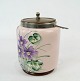 SoldEnglish jar for bisquits of fajance decorated with colorful flowers, in great condition.