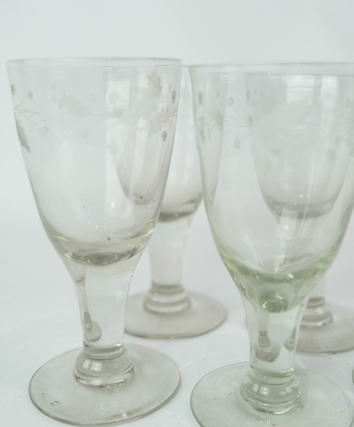 SolgtSæt af fem Egeløv vinglas af Holmegaard, i flot antik stand fra 1860.