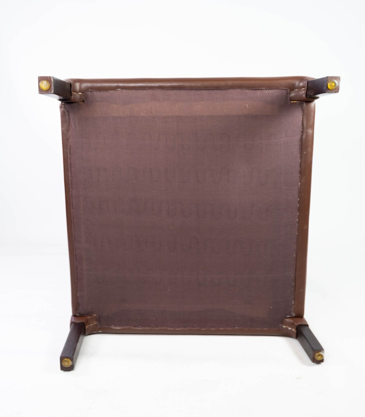 Easy chair upholstered with dark brown leather and legs of dark wood, of danish design from the 1960s. The chair is in great vintage condition.