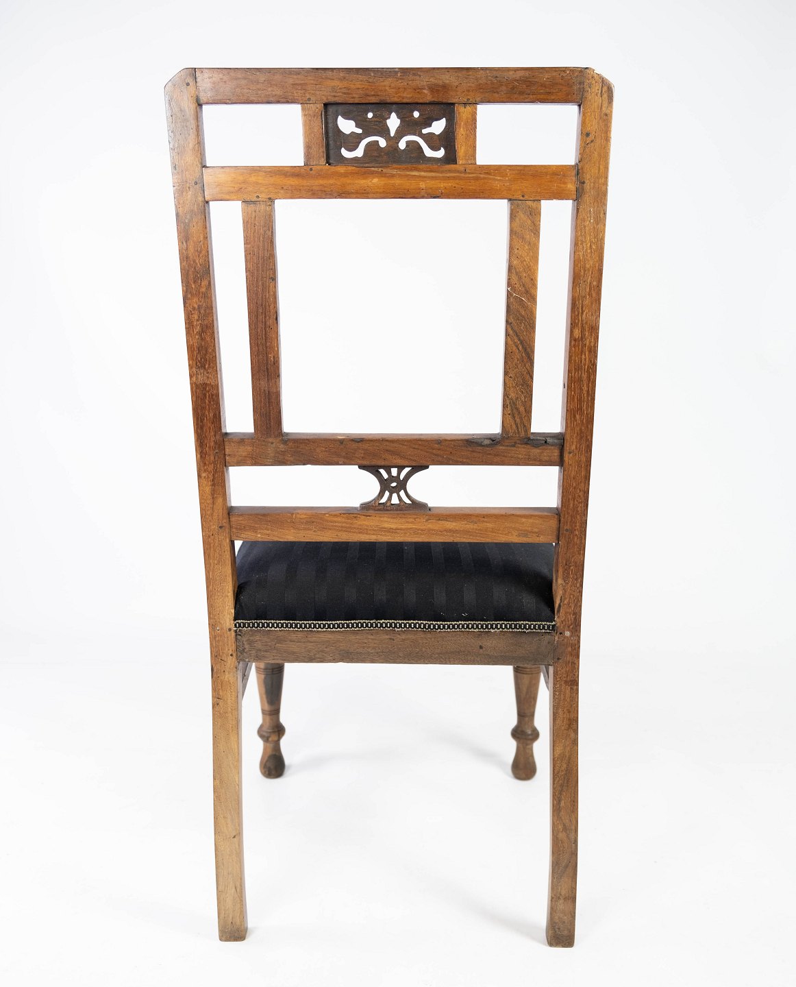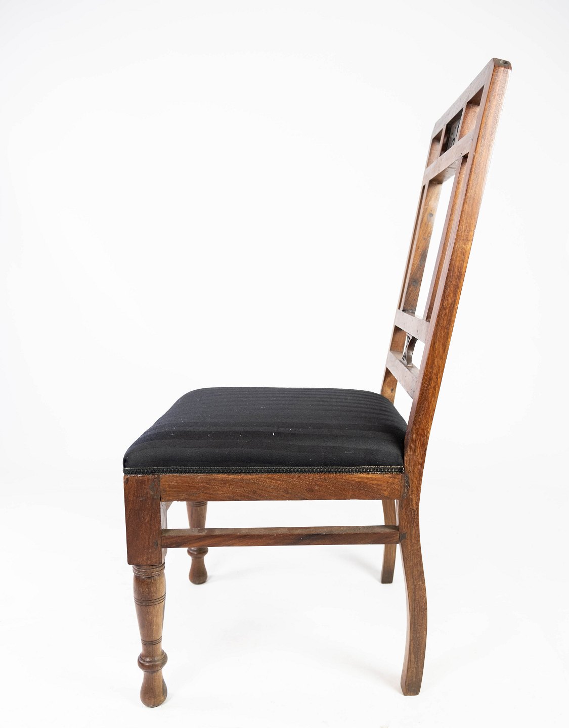 Set of two dining room chairs of mahogany and upholstered with black fabric, in great antique condition from 1910.