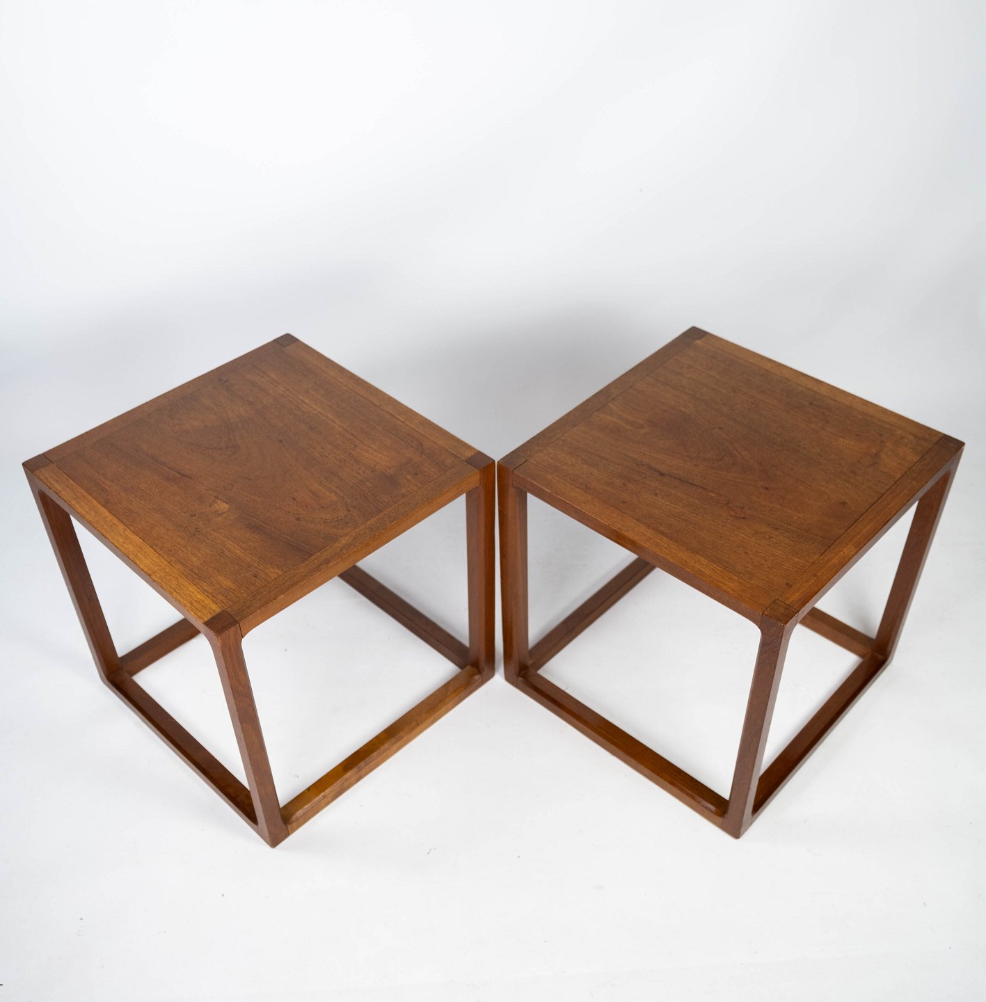 SoldSet of two side tables in teak designed by Johannes Andersen and manufactured by Silkebord Furniture from the 1960s. The tables are in great vintage condition.