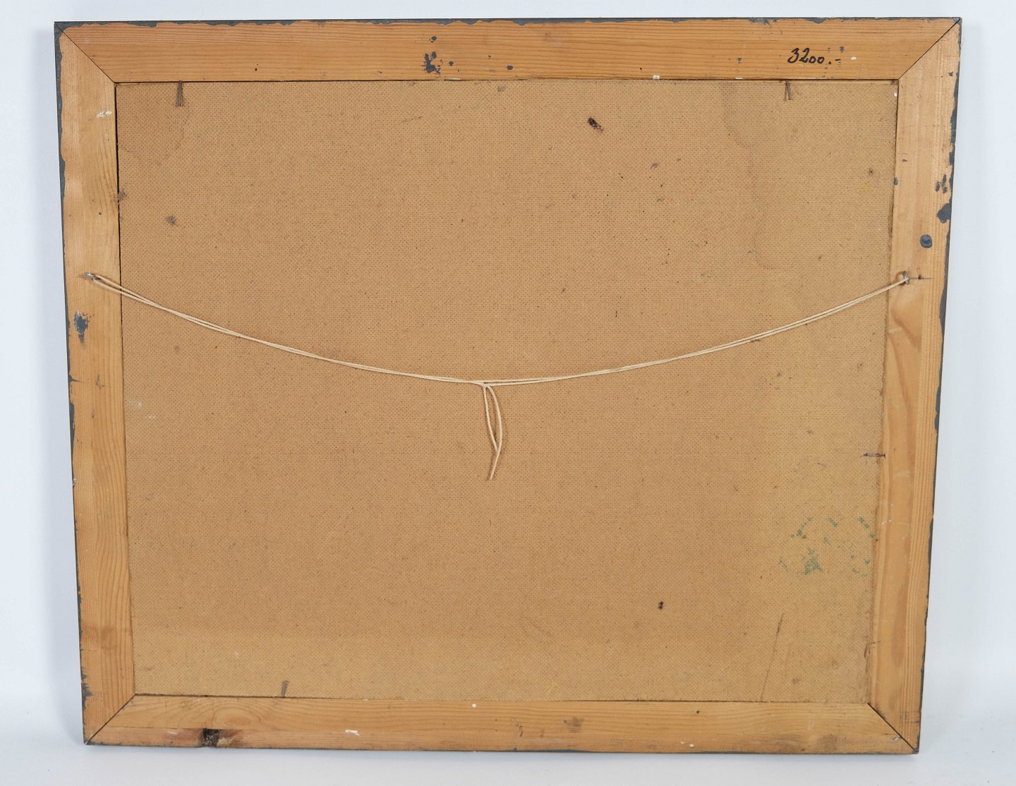 Painting in yellow colors with dark wooden frame from the 1970s.