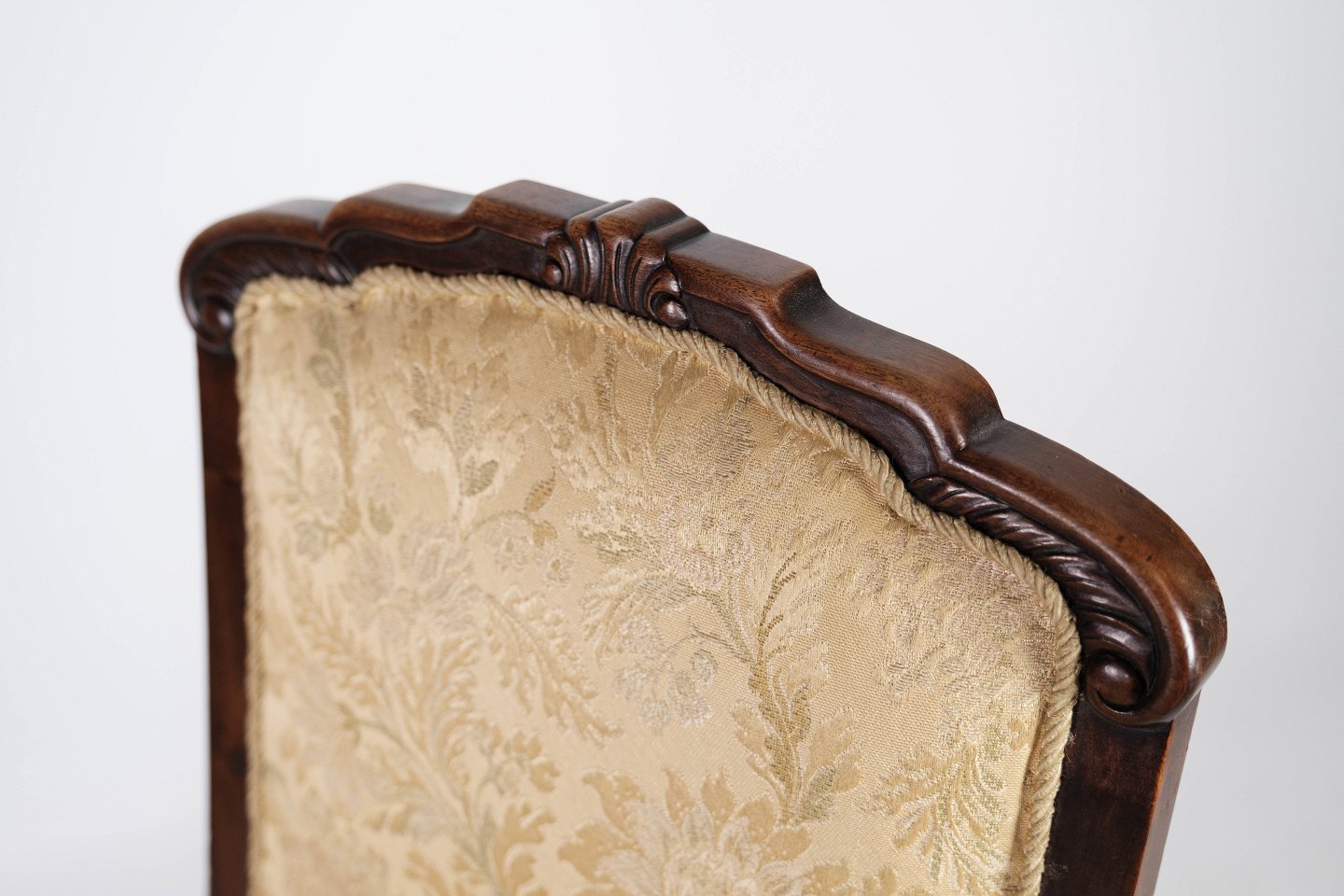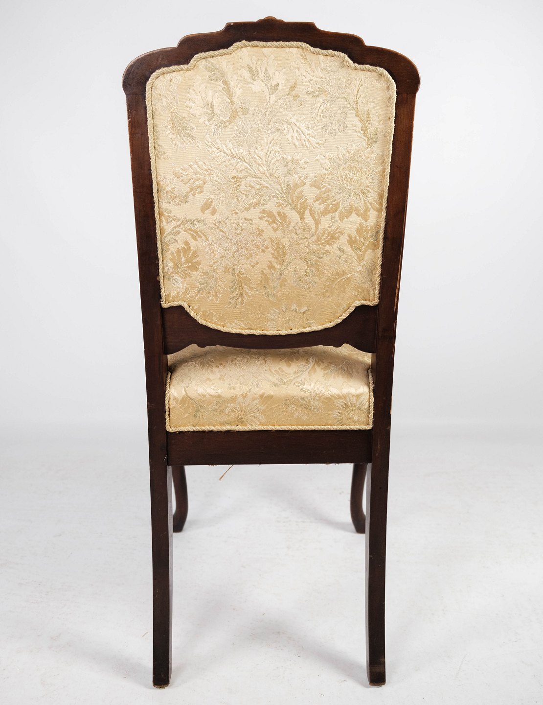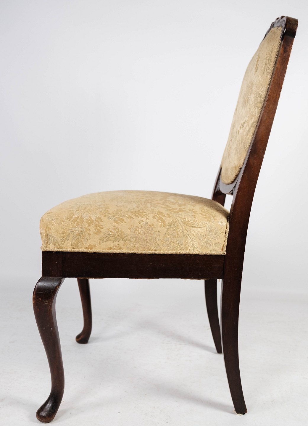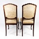 Sæt af to spisestuestole af eg og polstret med lyst stof, i flot antik stand fra 1930erne.
