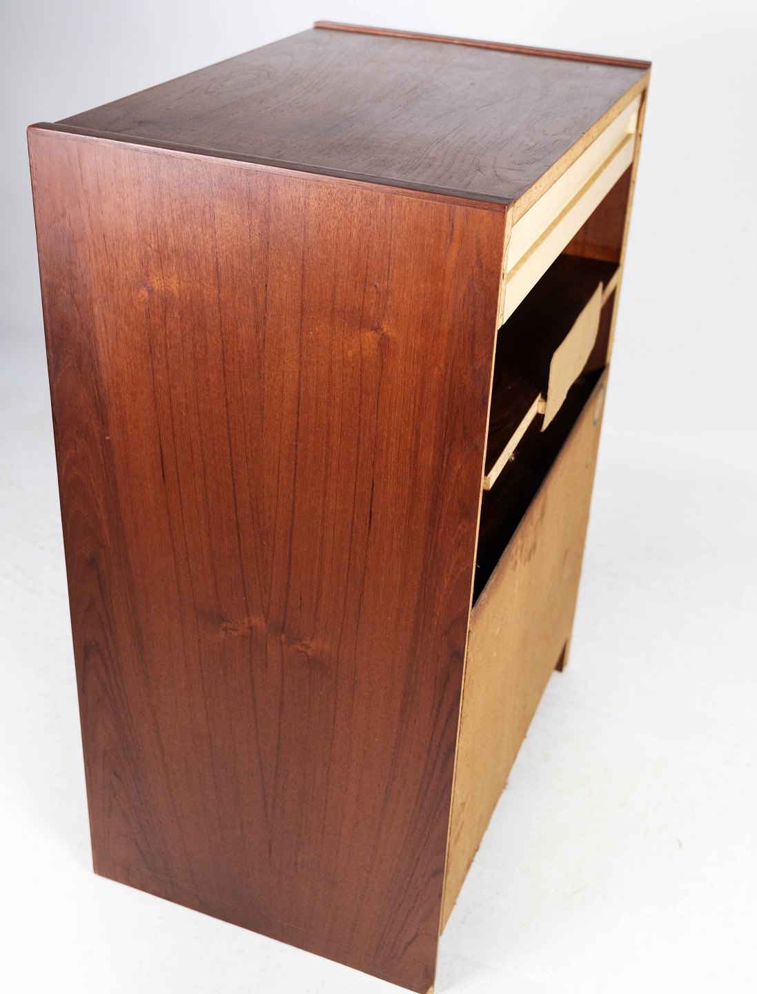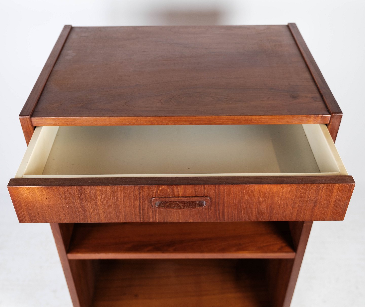 Sengebord i teak af dansk design fra 1960erne. Bordet er i flot brugt stand.