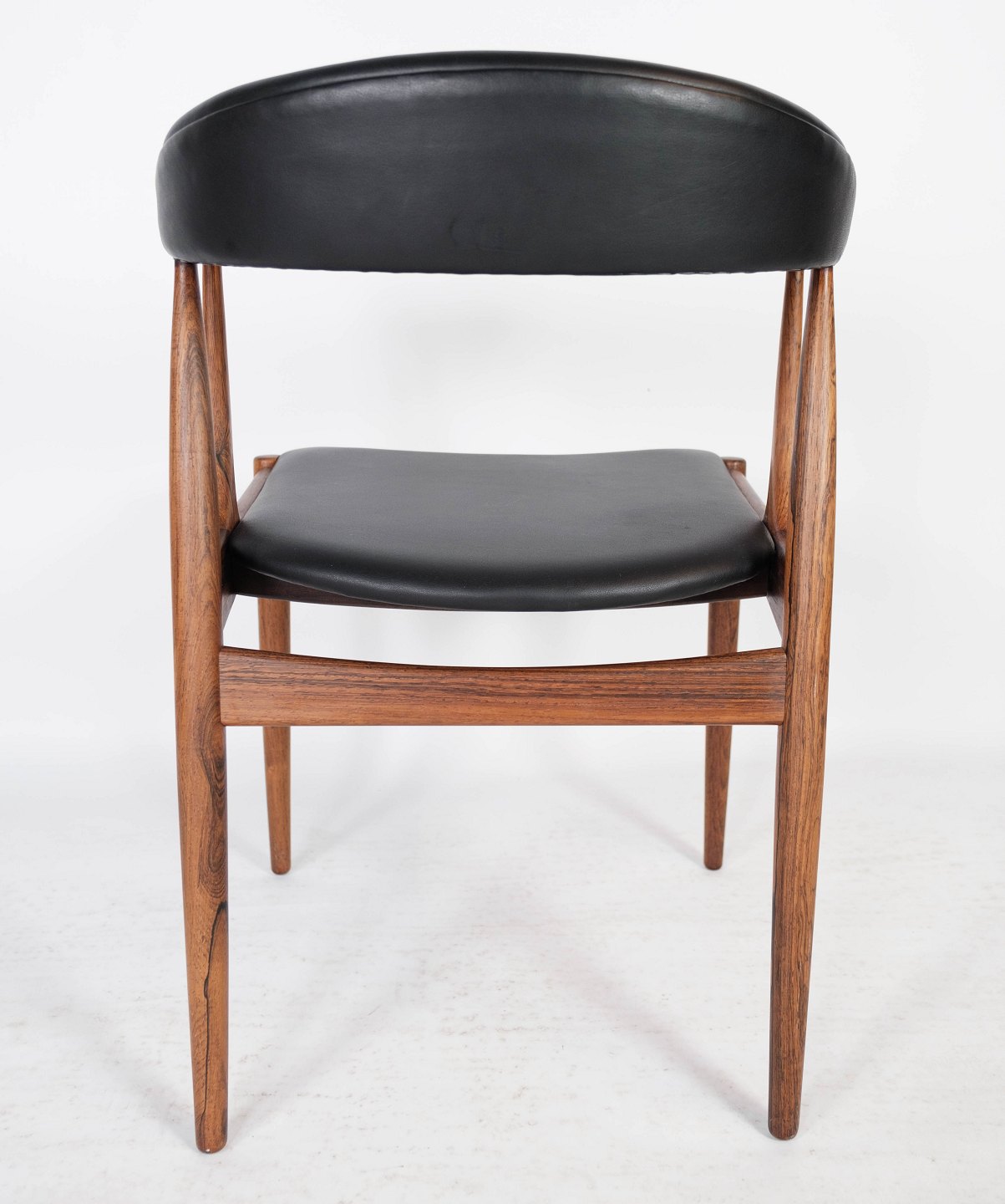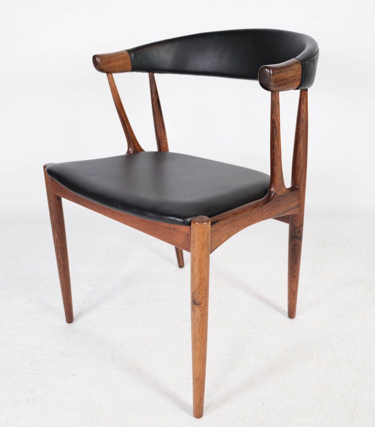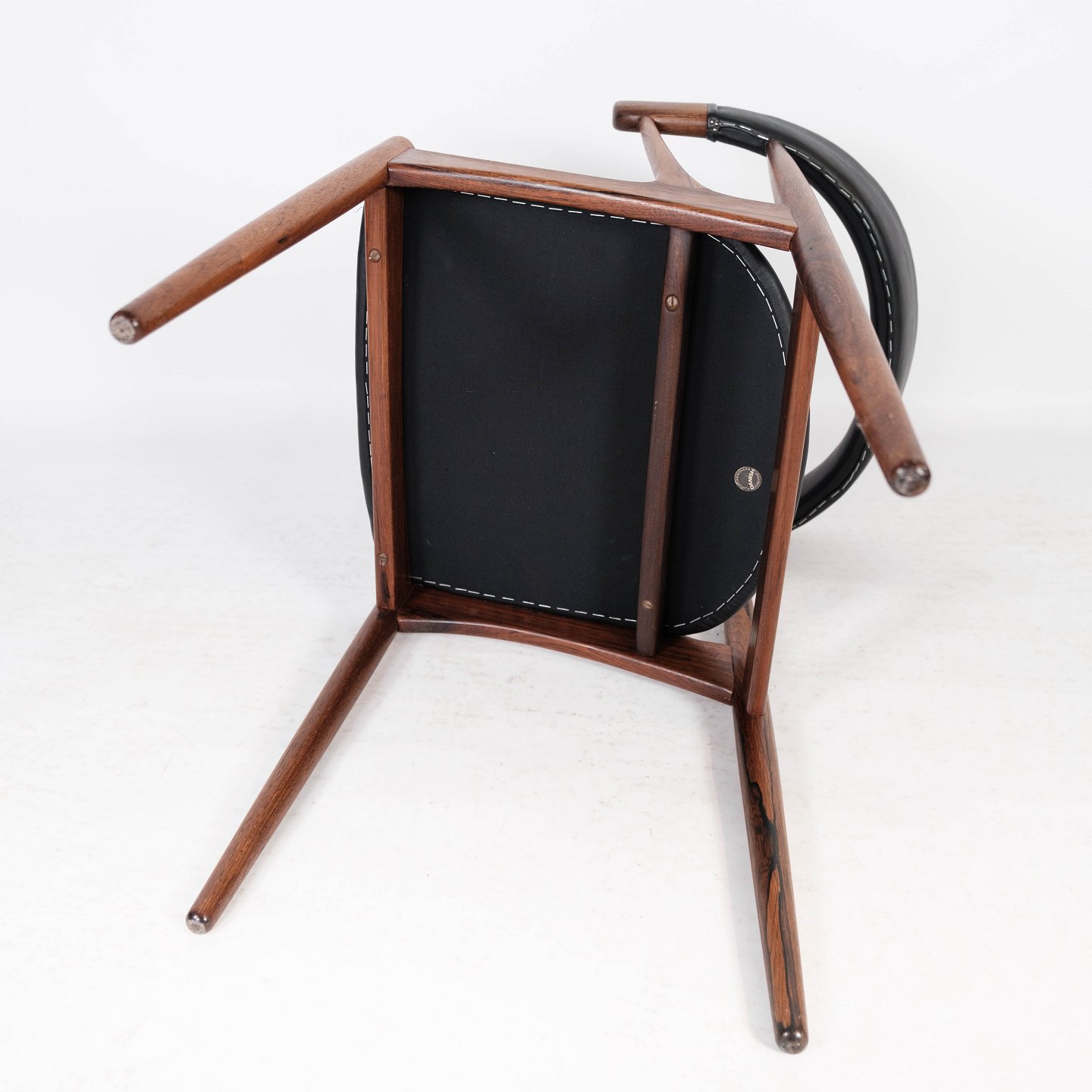SoldSet of six dining room chairs in rosewood and newly upholstered with black elegance leather, designed by Johannes Andersen, model BA113, Manufactored by Brdr. Andersens møbelfabrik A/S. The chairs are in great vintage condition.