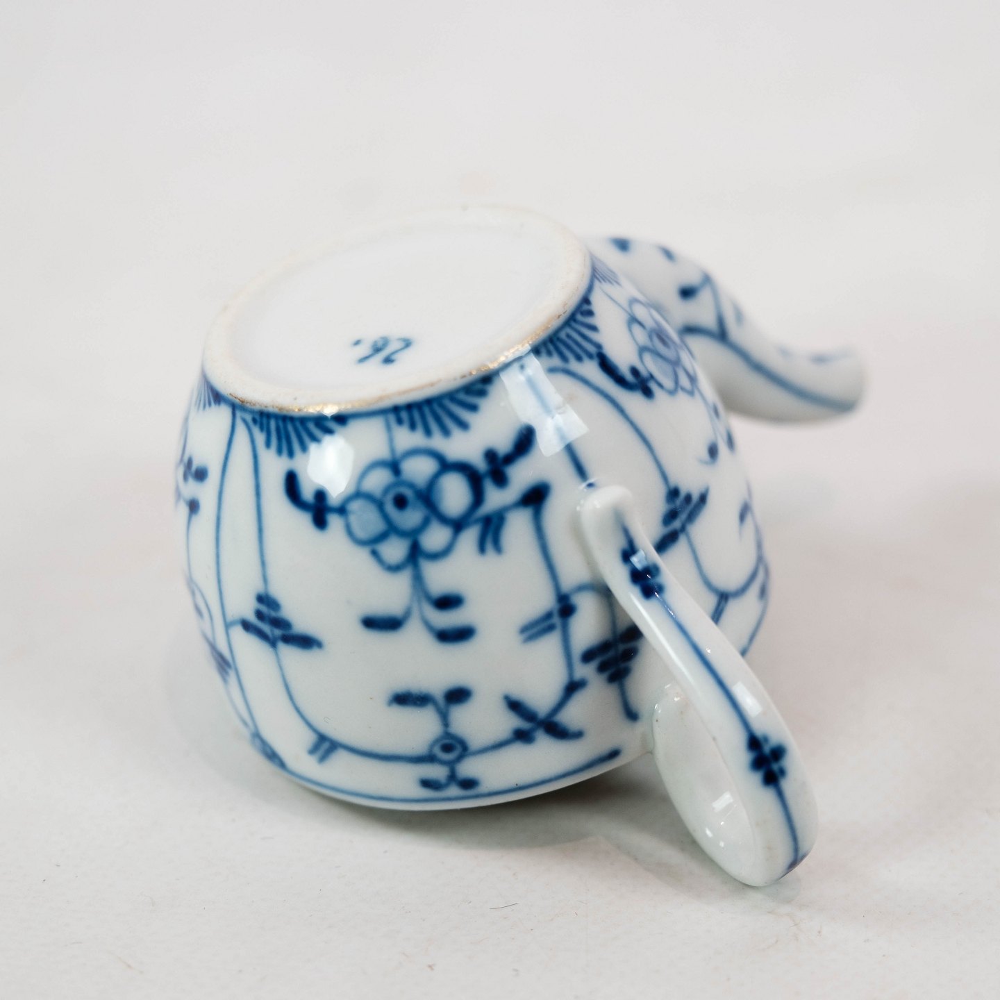 Skæg kop af tysk porcelæn dekoreret med blåt mønster.
