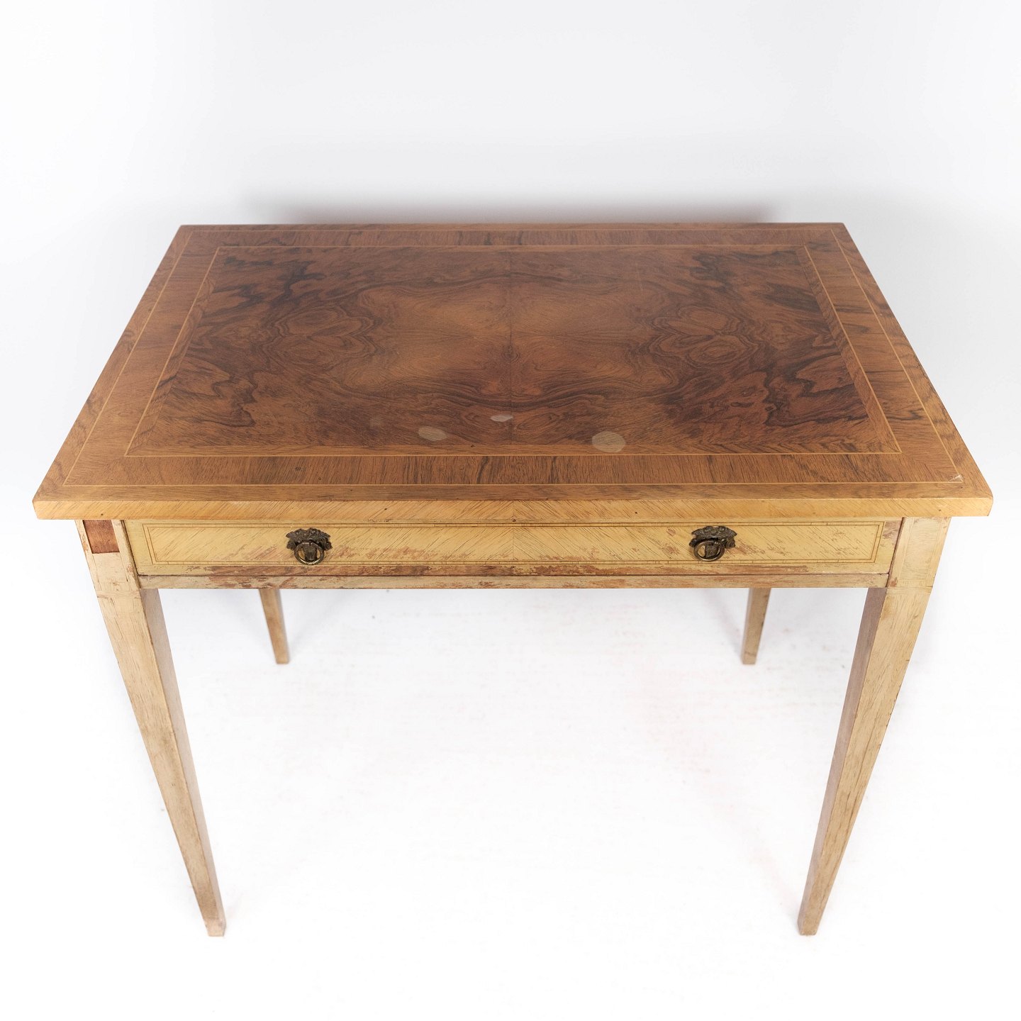 SoldSmaller desk of walnut with inlaid wood, in great antique condition from around 1890.