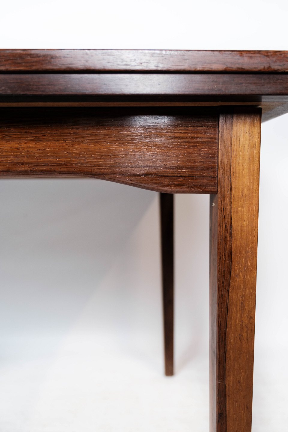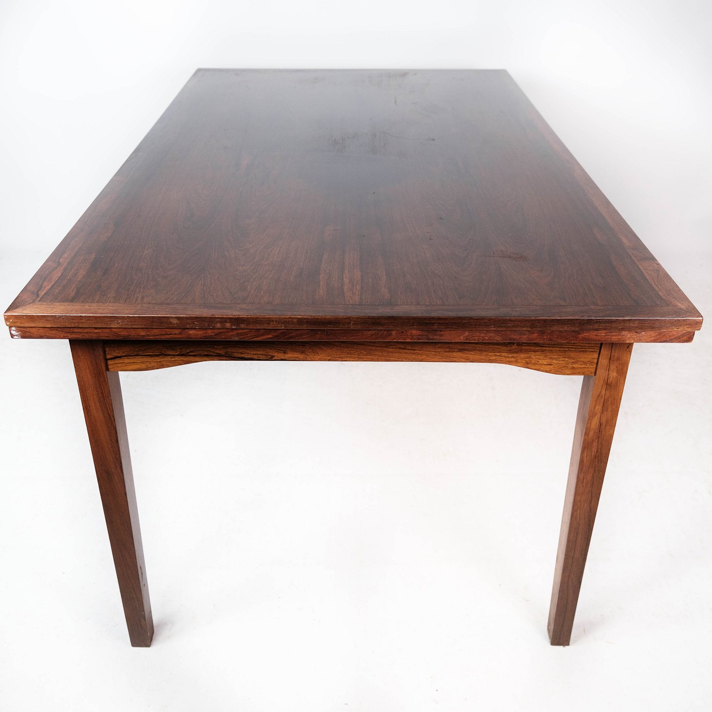 Dette spisebord i palisander fra 1960'erne er et smukt og funktionelt tilføjelse til enhver spisestue. Med sit enkle design og udtræksfunktion tilbyder det ekstra plads til dine gæster, når det er nødvendigt.