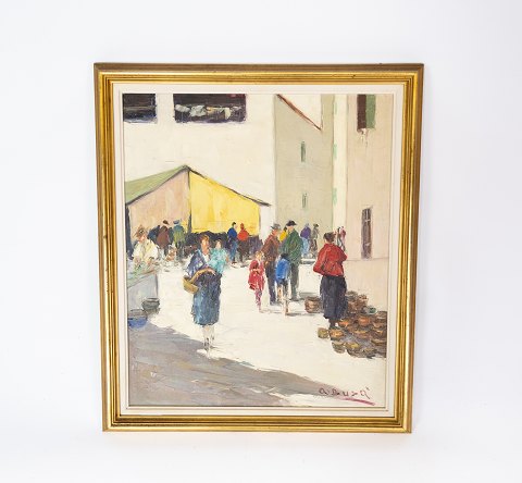 Oliemaleri på lærred i blå farver af den dansk kunster Åse Højer, f. 1952.