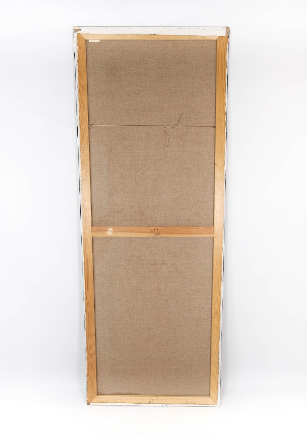Højt oliemaleri på lærred i mørke farver af den dansk kunster Åse Højer, f. 1952.