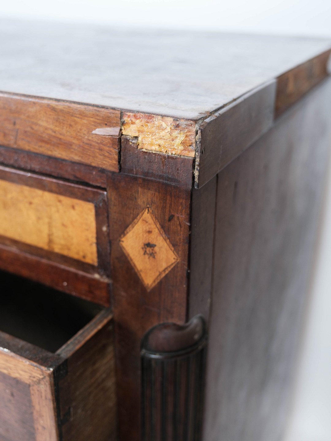 Louis Seize chest of drawers of mahogany with inlaid wood. The chest is in great antique condition.
