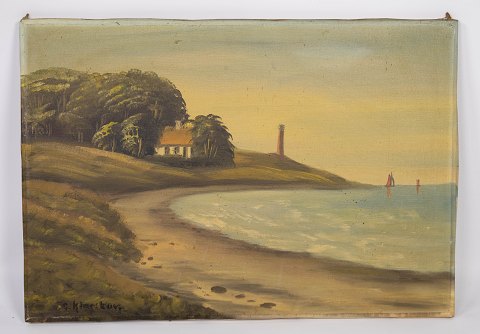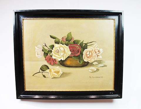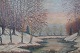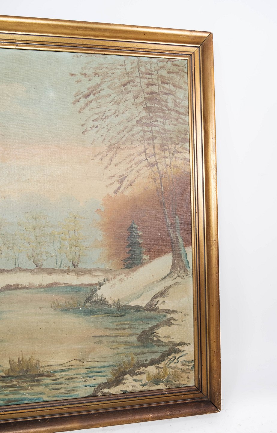 Painting on canvas with winter motif and gilded frame, with unknown signature.