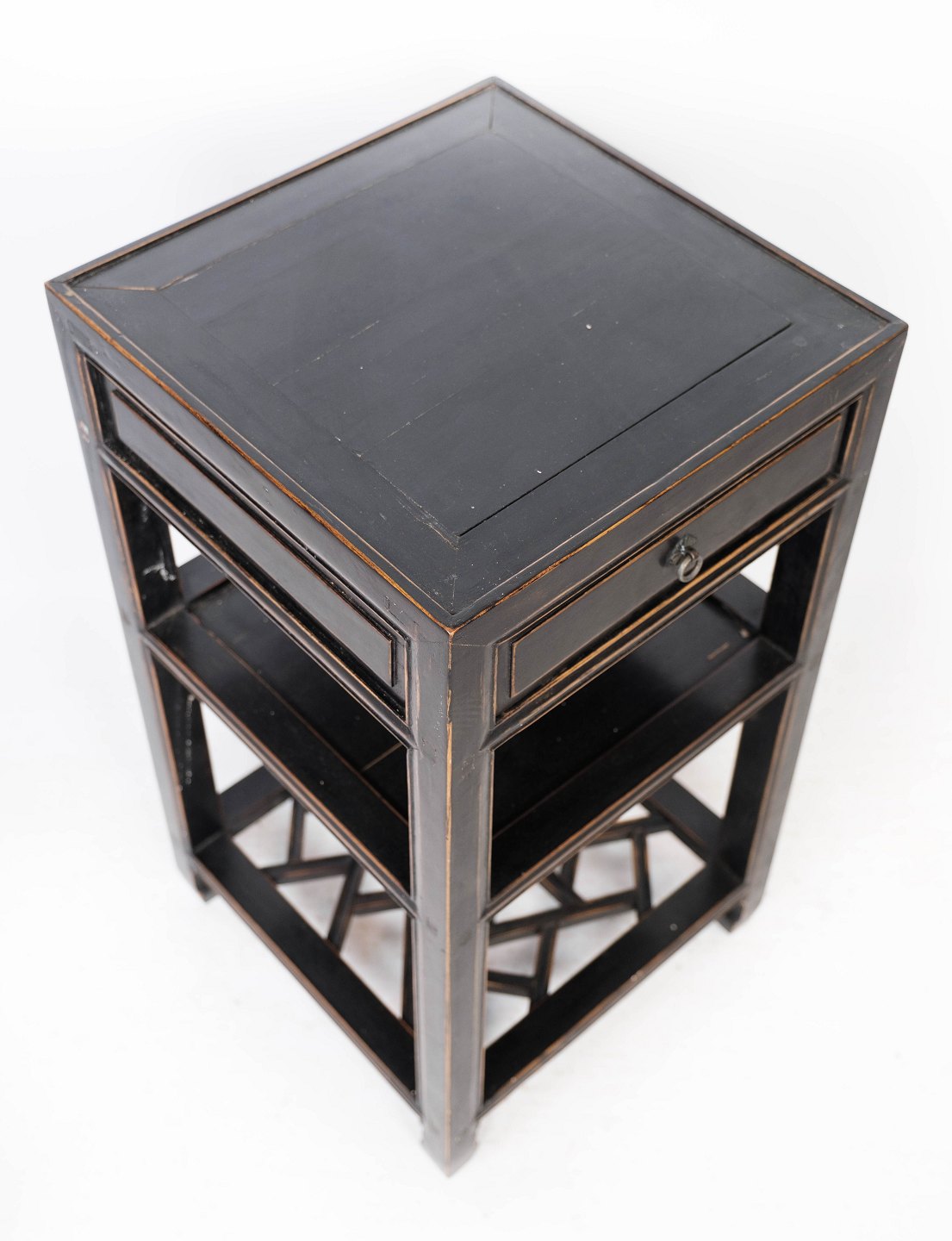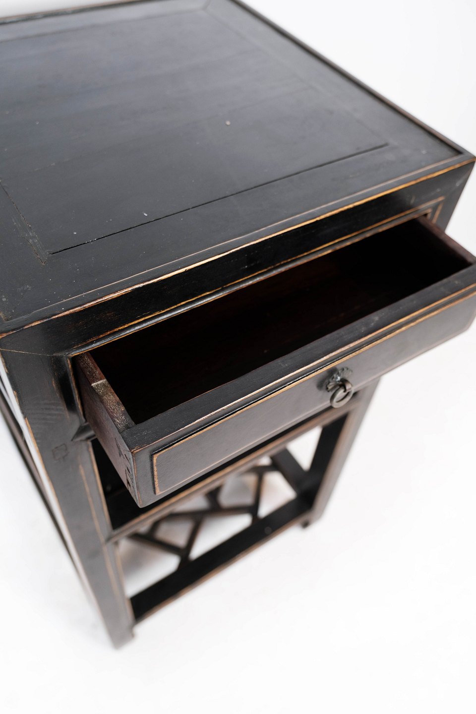 SoldChinese side table of black painted wood with patina from around the 1920s. The table is in great antique condition.
