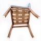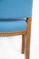 Dining room chair with legs of light mahogany and upholstered with light blue fabric of Danish design from the 1940s.
