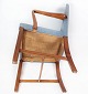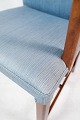 Armchair in mahogany and upholstered with light blue fabric by Fritz Hansen. The chair is in great vintage condition.