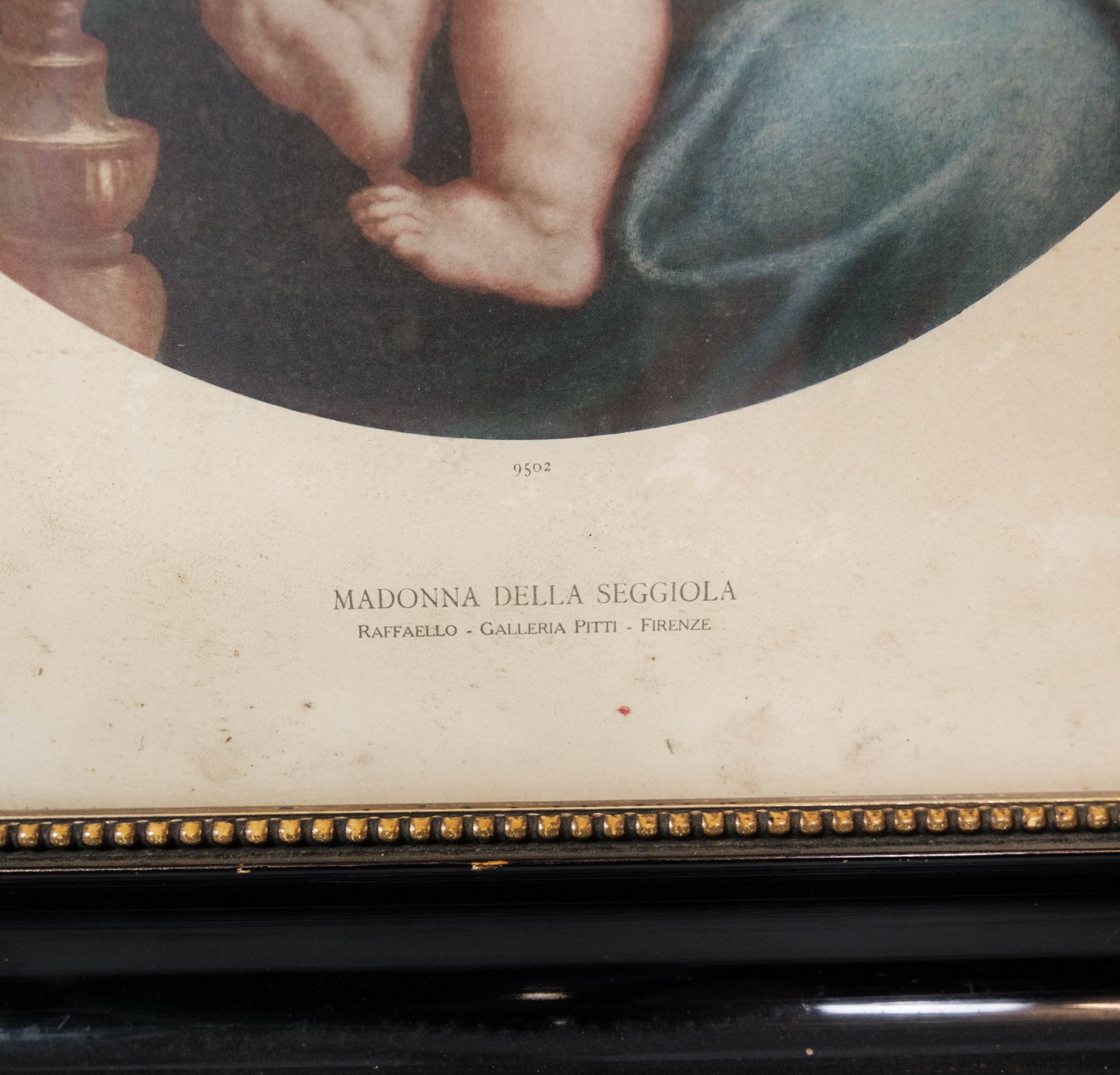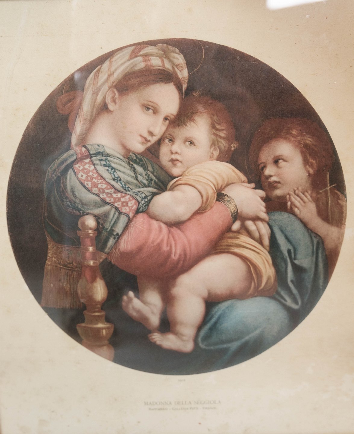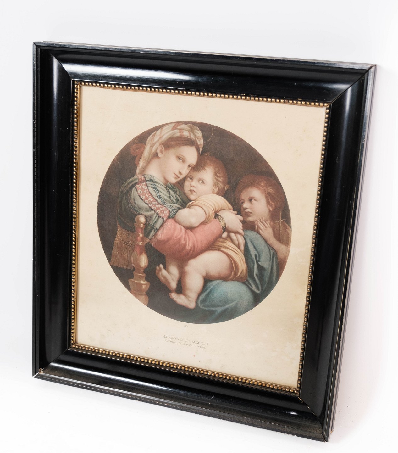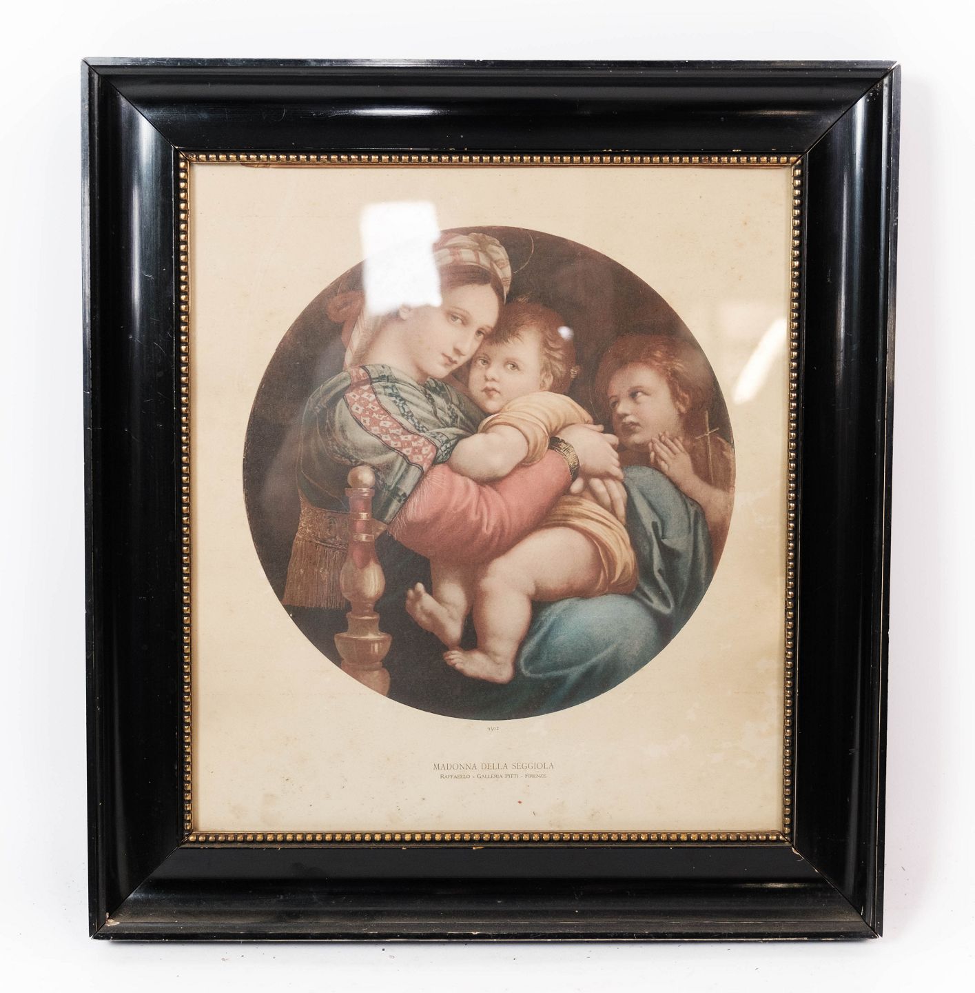 Print of Madonna Della Seggiola with black frame from the 1940s.