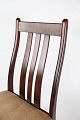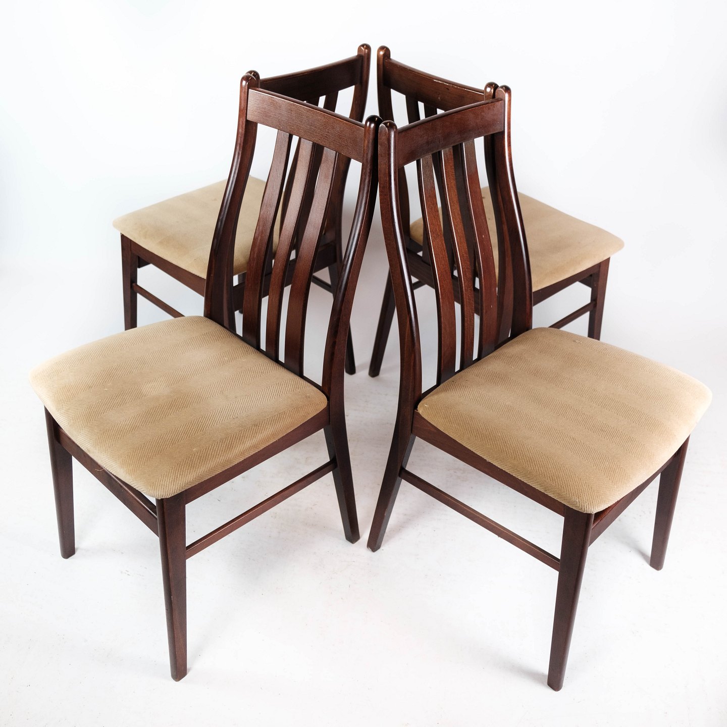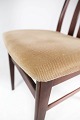 Sæt af fire spisestuestole i mahogni og polstret med lyst stof, af dansk design fremstillet af Farstrup møbler i 1960erne.