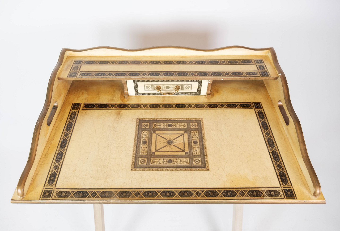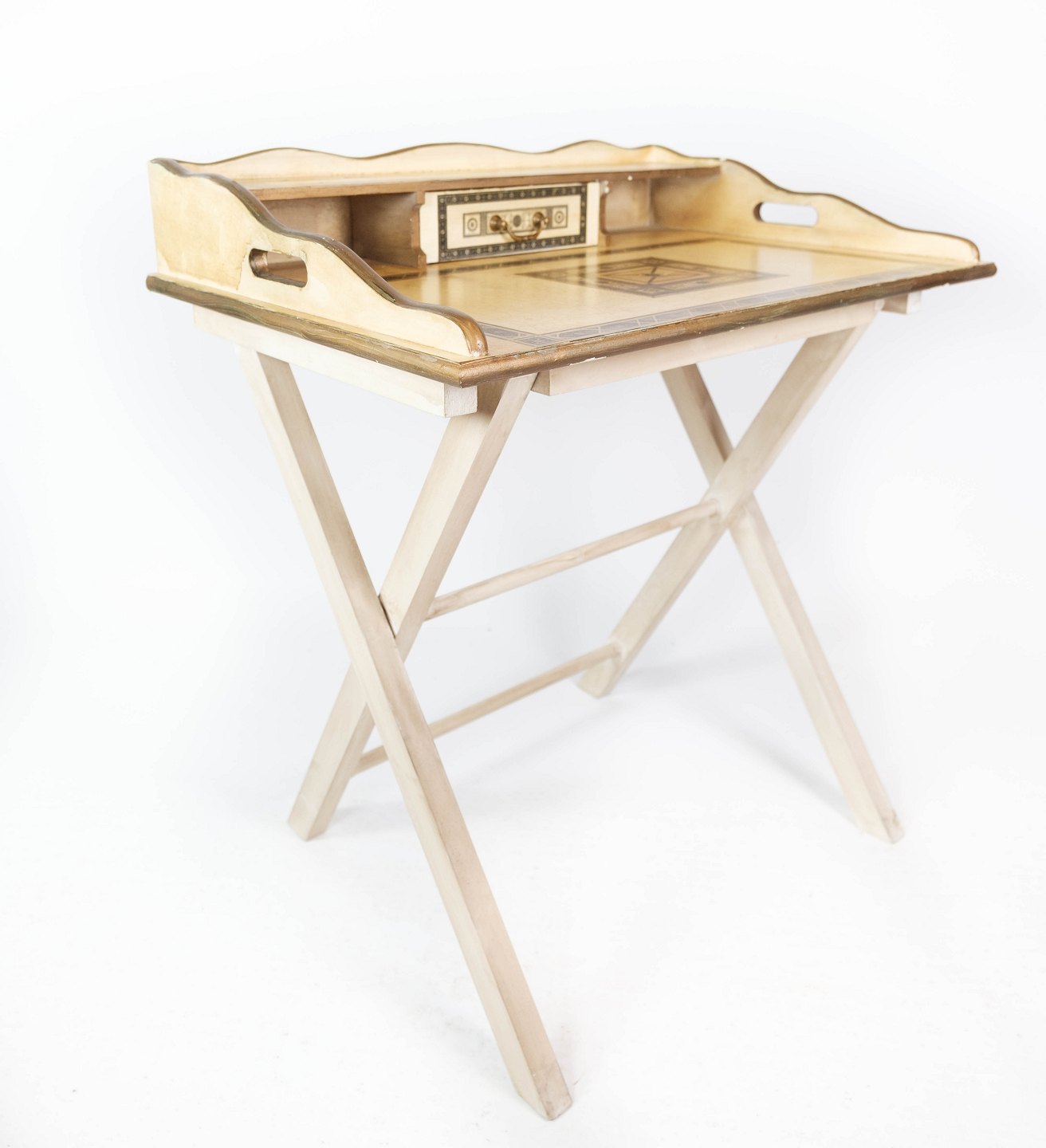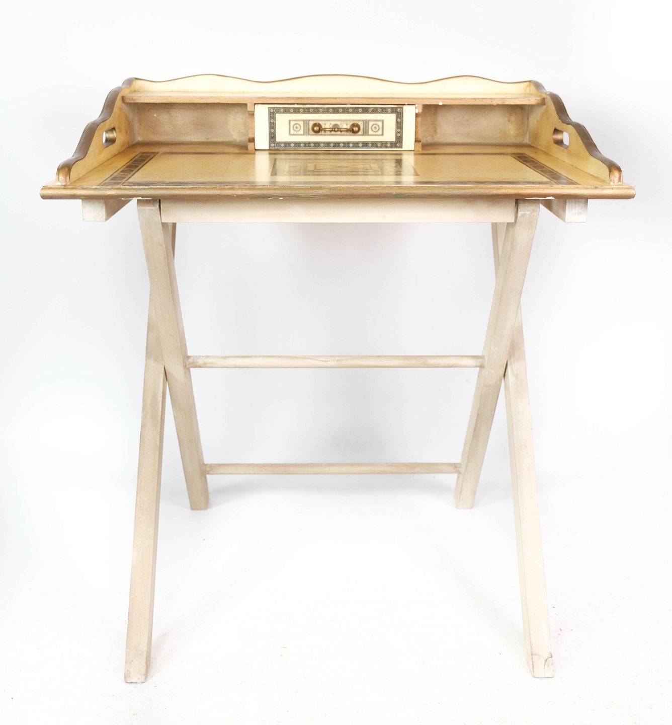 Smaller desk in light colors, in great antique condition. The table can be folded together.