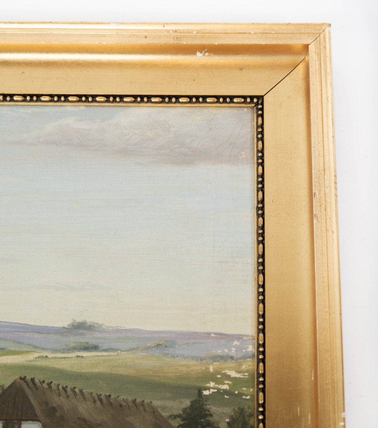 Painting on canvas with country motif and gilded frame, with unknown signature from the 1920s.