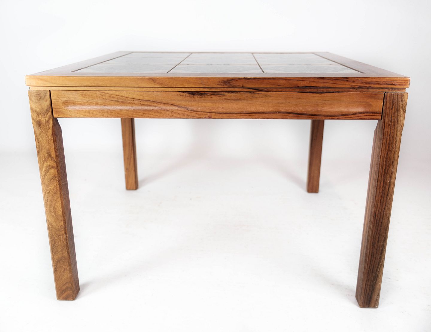 Palisandertræets varme toner og smukke mønster giver bordet en tidløs elegance, der passer perfekt ind i enhver indretningsstil. De indsatte klinker tilføjer en interessant detalje og et strejf af originalitet til bordets design.
