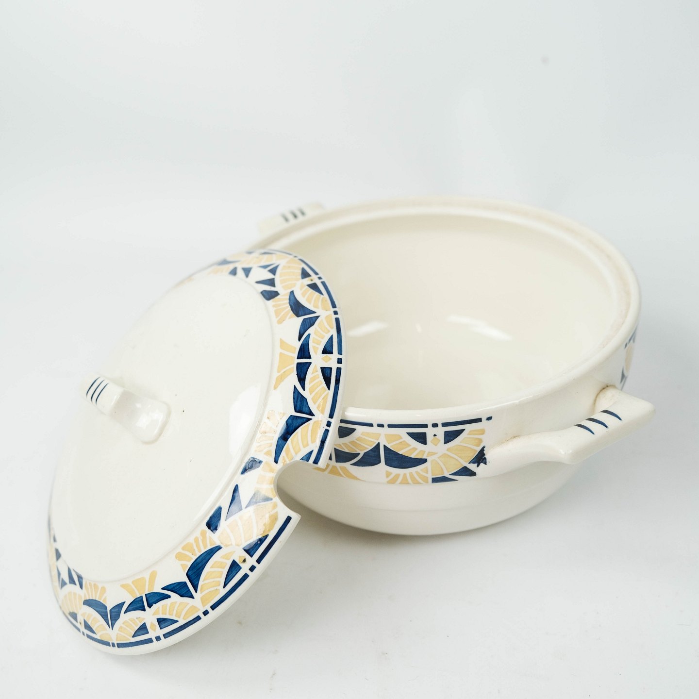 Terrin dekoreret med blå og gule farver fra 1960erne.