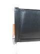 Lænestol, model FK82 - X-chair, designet af Preben Fabricius og Jørgen Kastholm i 1968 og fremstillet af Lange Production. Stolen er polstret med sort læder samt polstret armlæn.