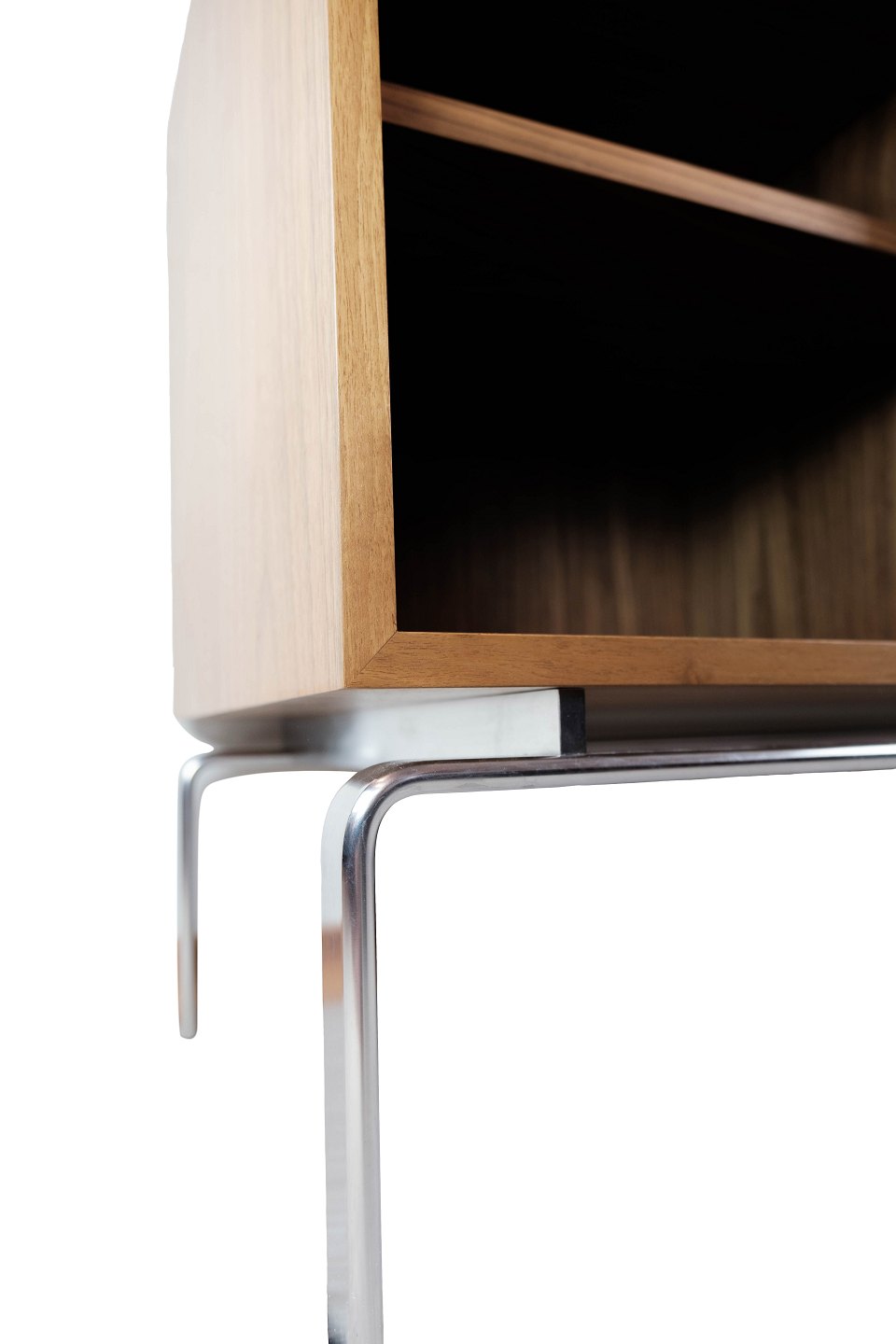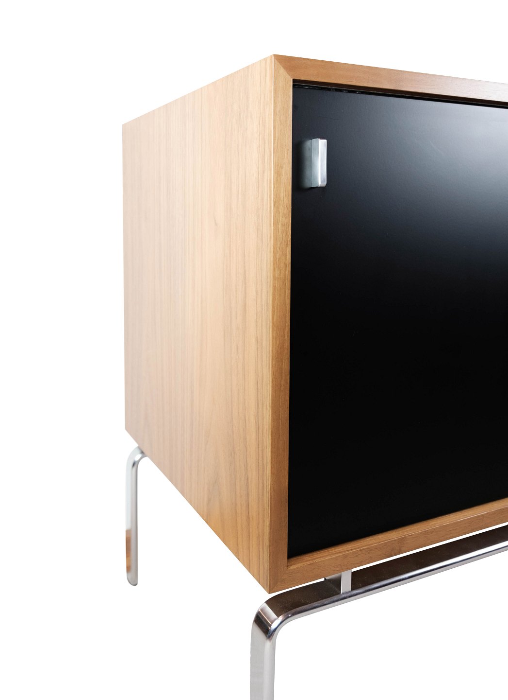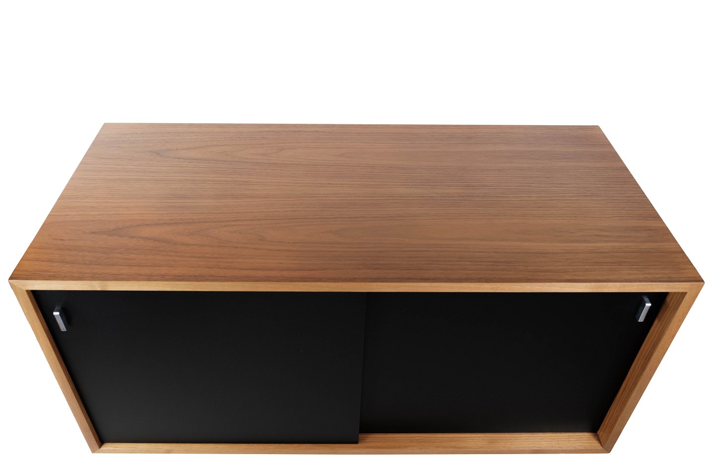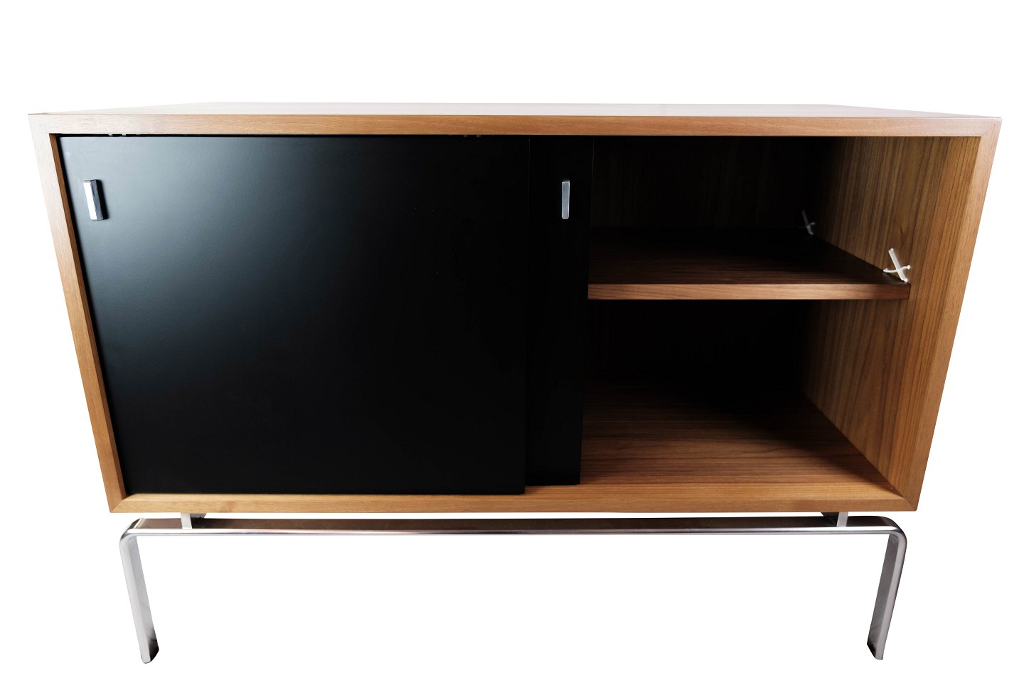SoldSideboard, model FK 100, of Santon rosewood and black sliding doors, designed by Fabricius and Kastholm, and manufactured by Lange Production. The item is in great vintage condition.