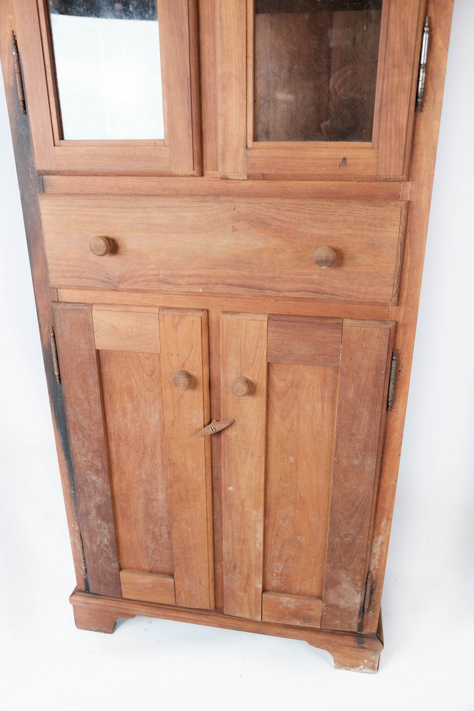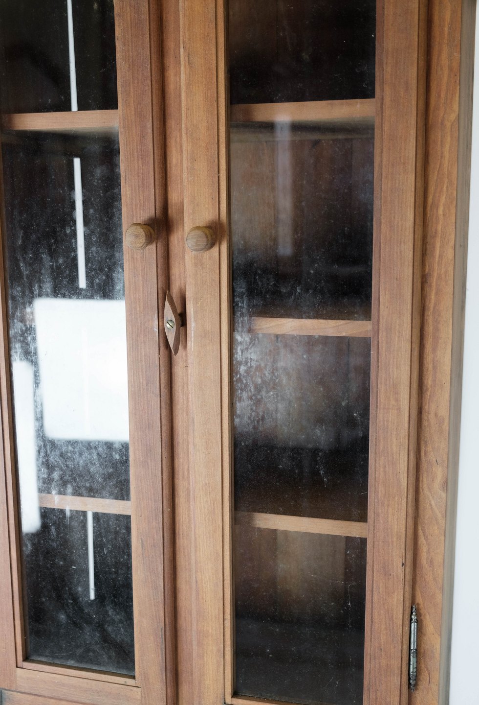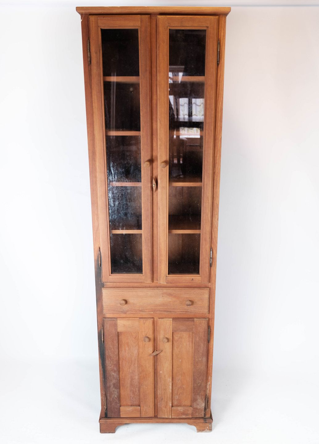 SoldTall glass cabinet of light wood, in great antique condition from the 1940s.