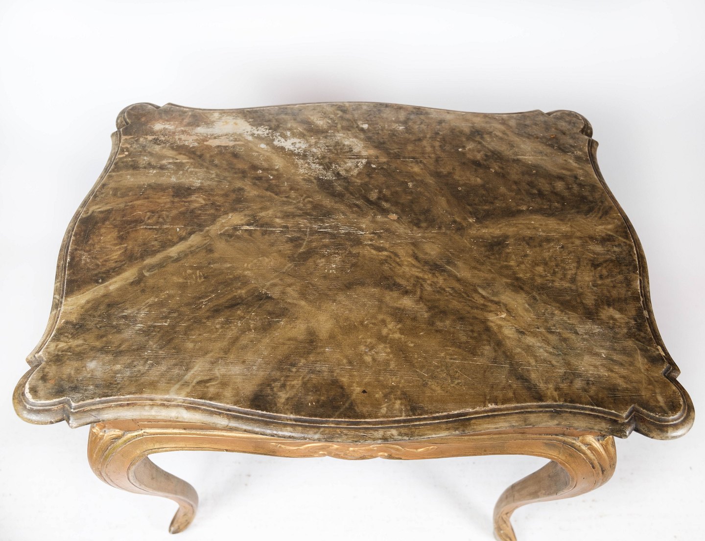 New Rococo side table with marbled tabletop and frame of gilded wood, in great antique condition from the 1860s.