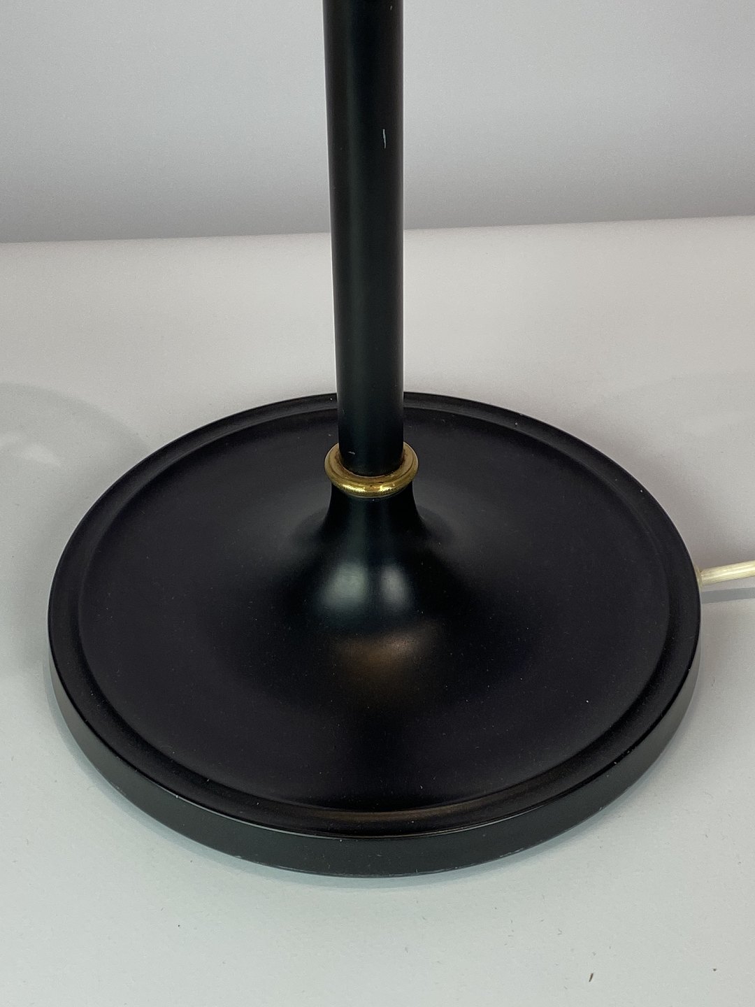 Bordlampe med stel af sort metal og messing med papir skærm, af dansk design af Le Klint fra 1960erne.
