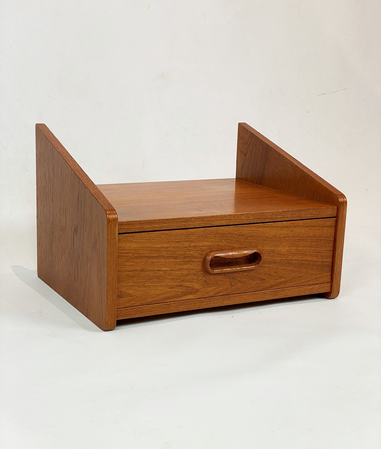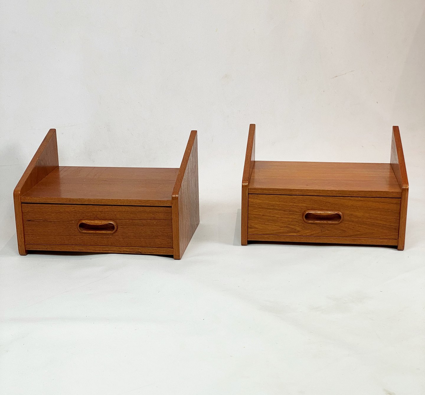 A set of bedside tables with drawer in teak of Danish design from the 1960s. The items are in great vintage condition.