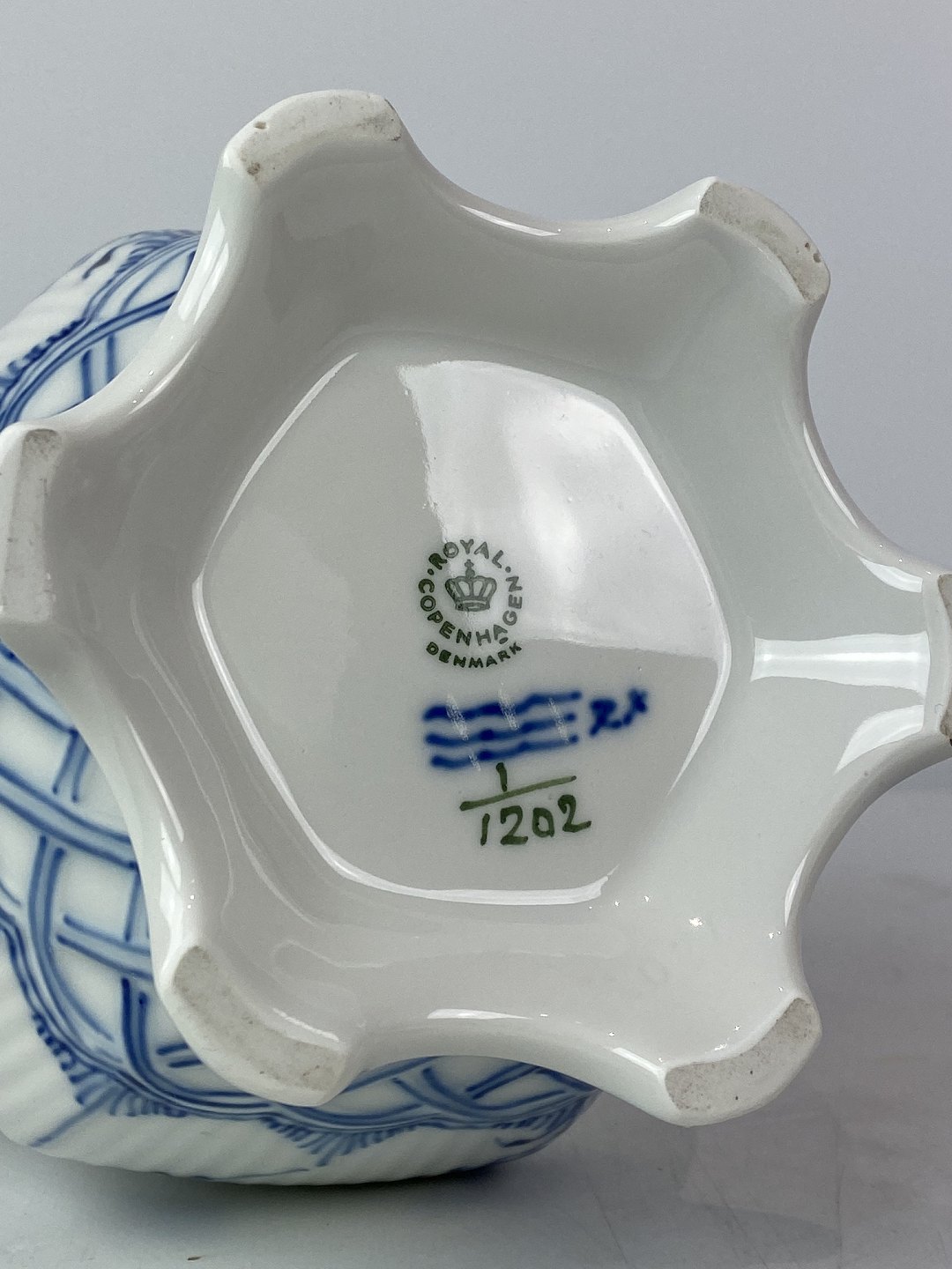 Kgl. Musselmalet helblonde kaffekande, nr.: 1/1202.